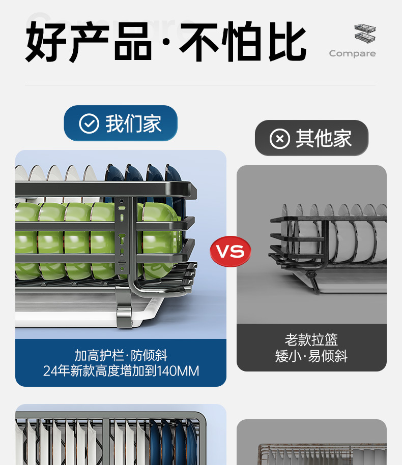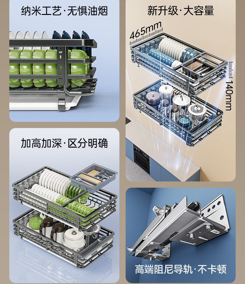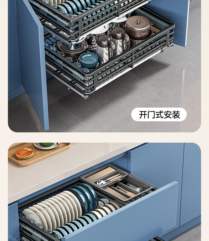 Корзина для кухонного шкафа с выдвижным ящиком с двойным слоем для посуды держатель для посуды 304 из нержавеющей стали