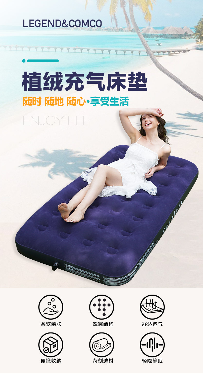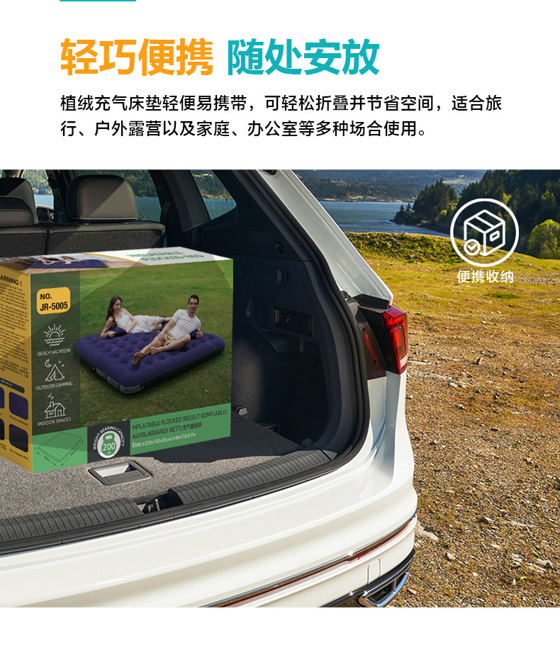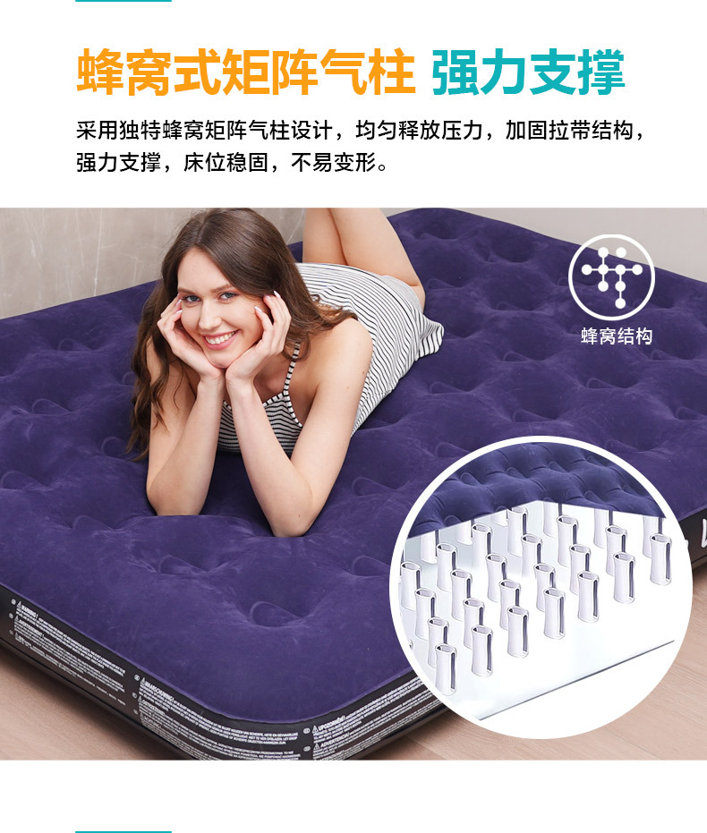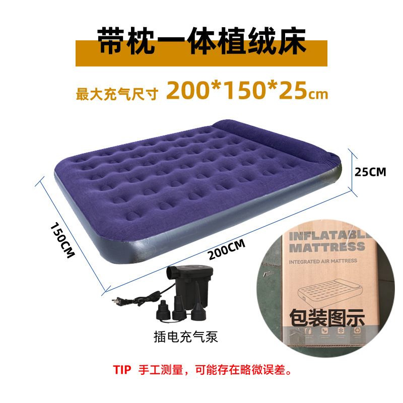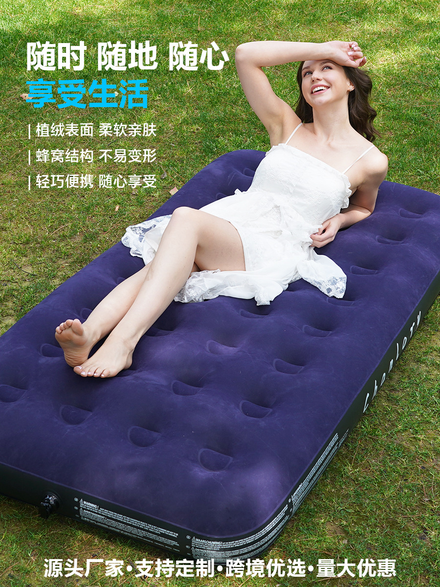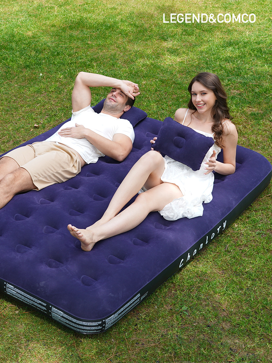 Надувной матрас для кемпинга, двуспальная надувная кровать с флокированием для дома, утолщенная складная кровать для палатки