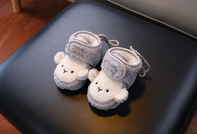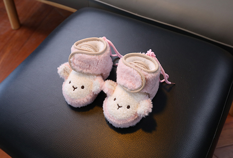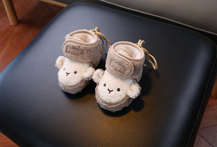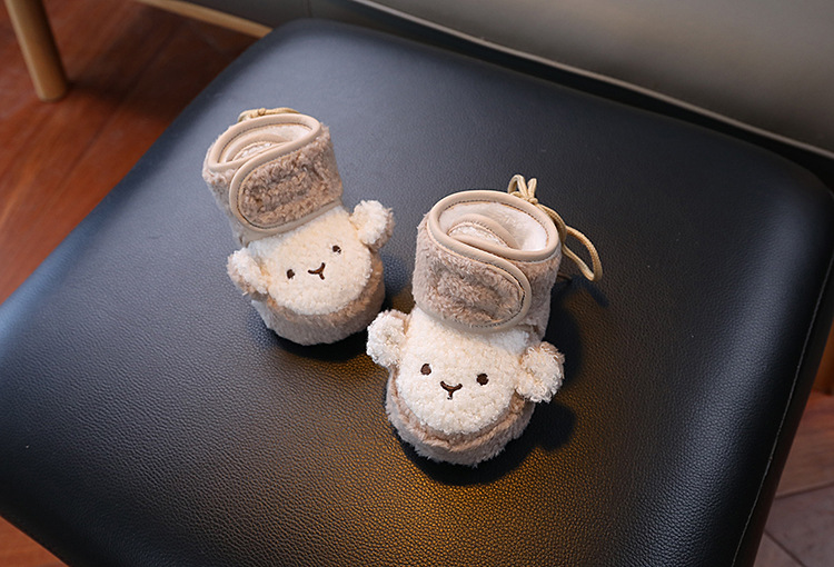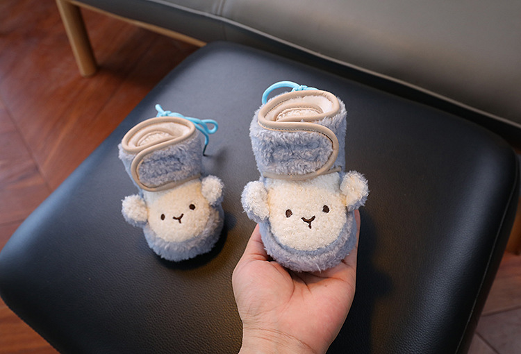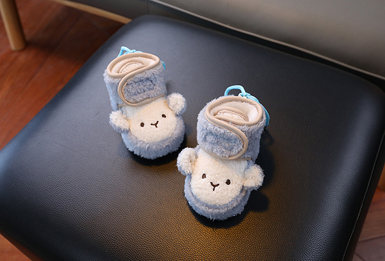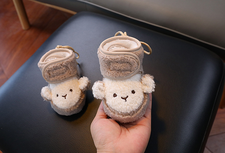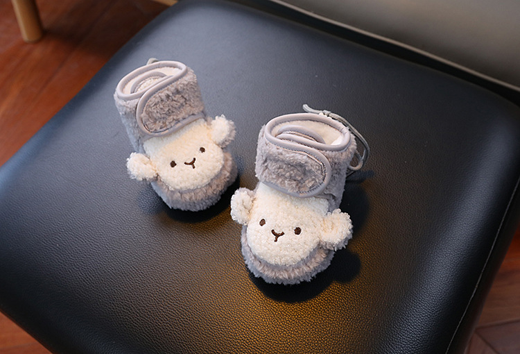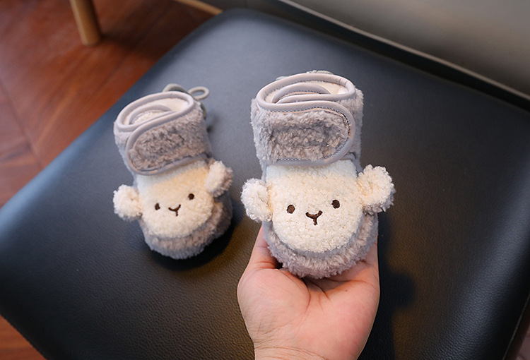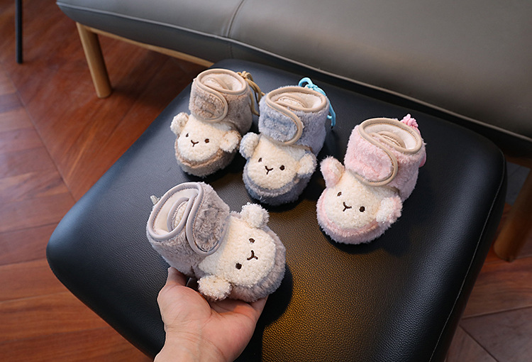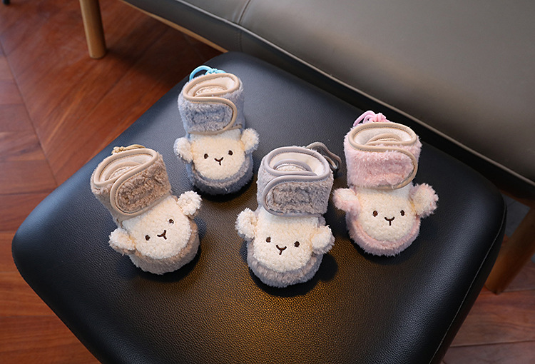Детская обувь милая обезьяна осенняя зимняя хлопчатобумажная обувь плюшевая толстая снежная сапоги липучка нескользящая детская мягкая подошва