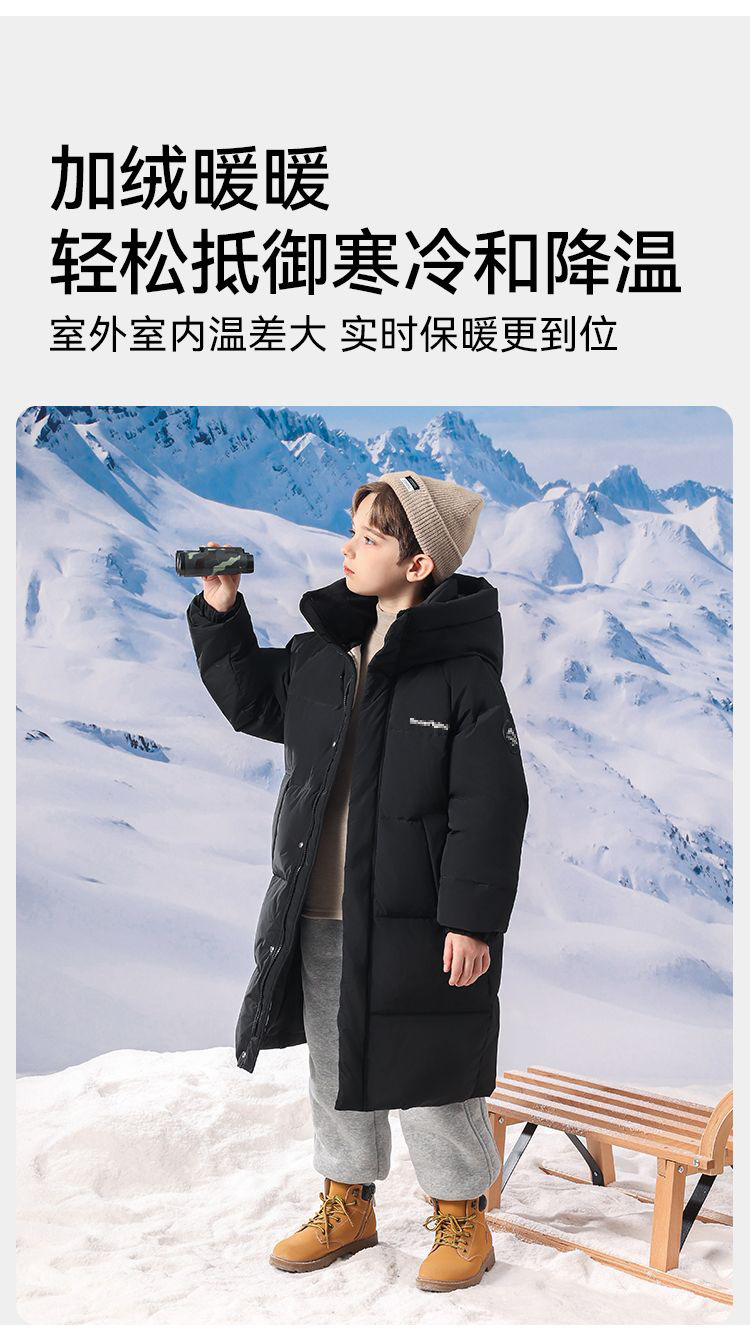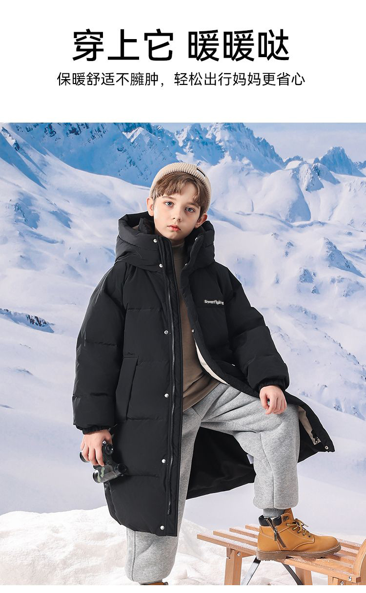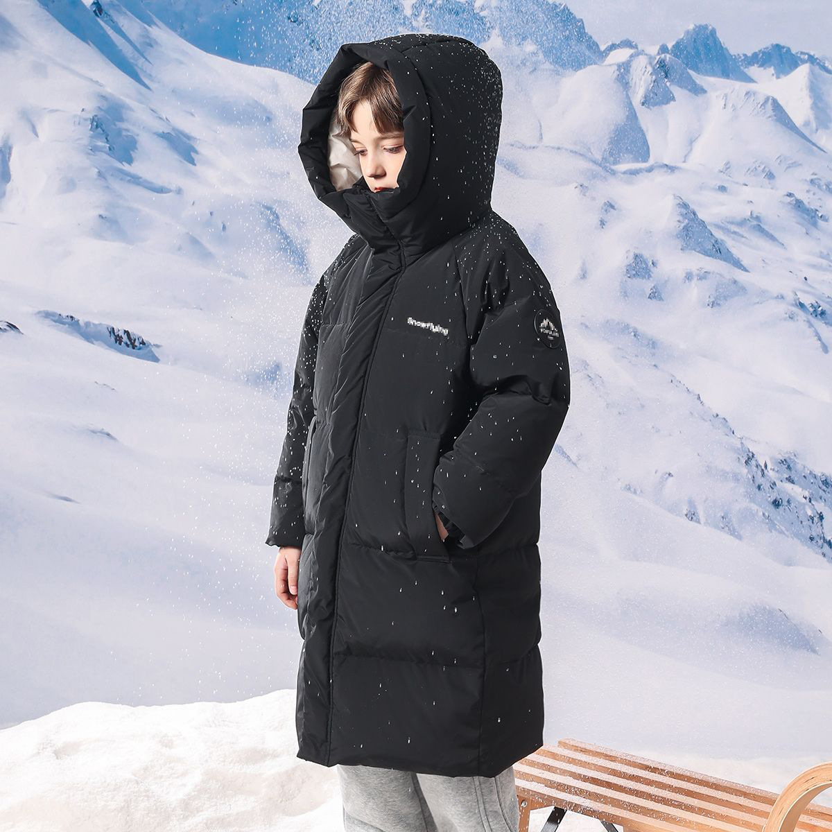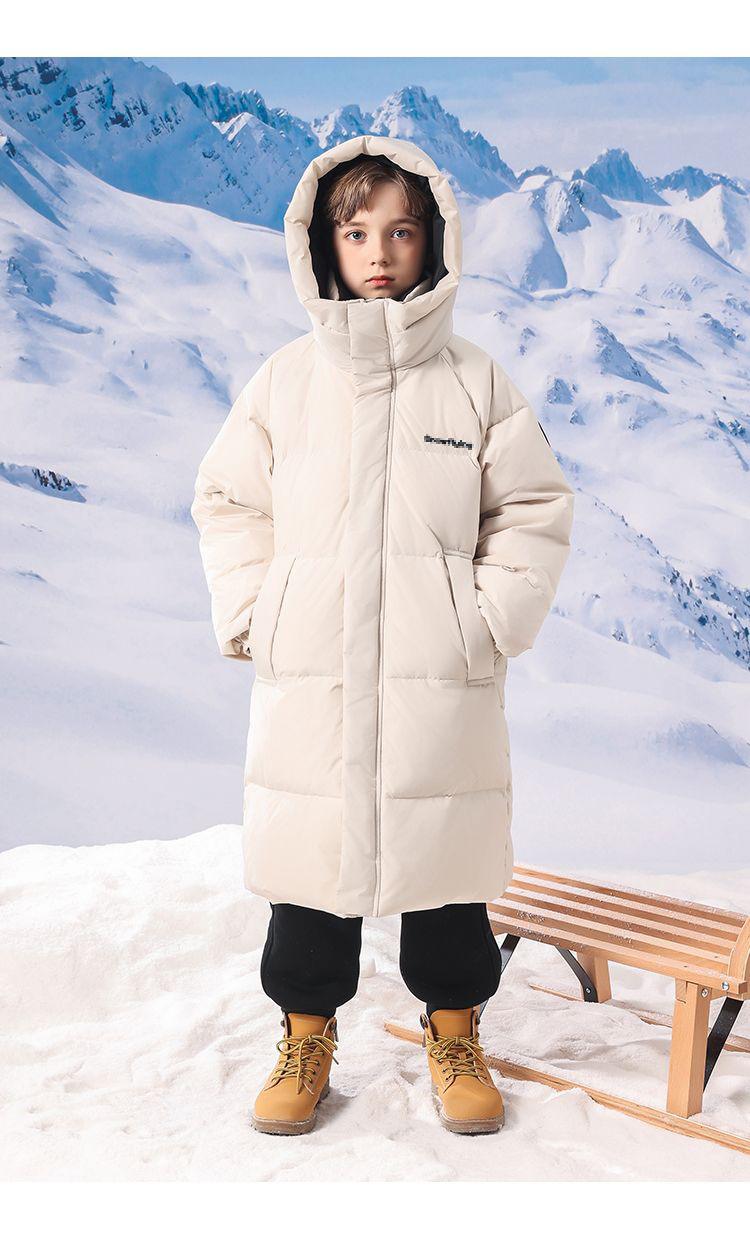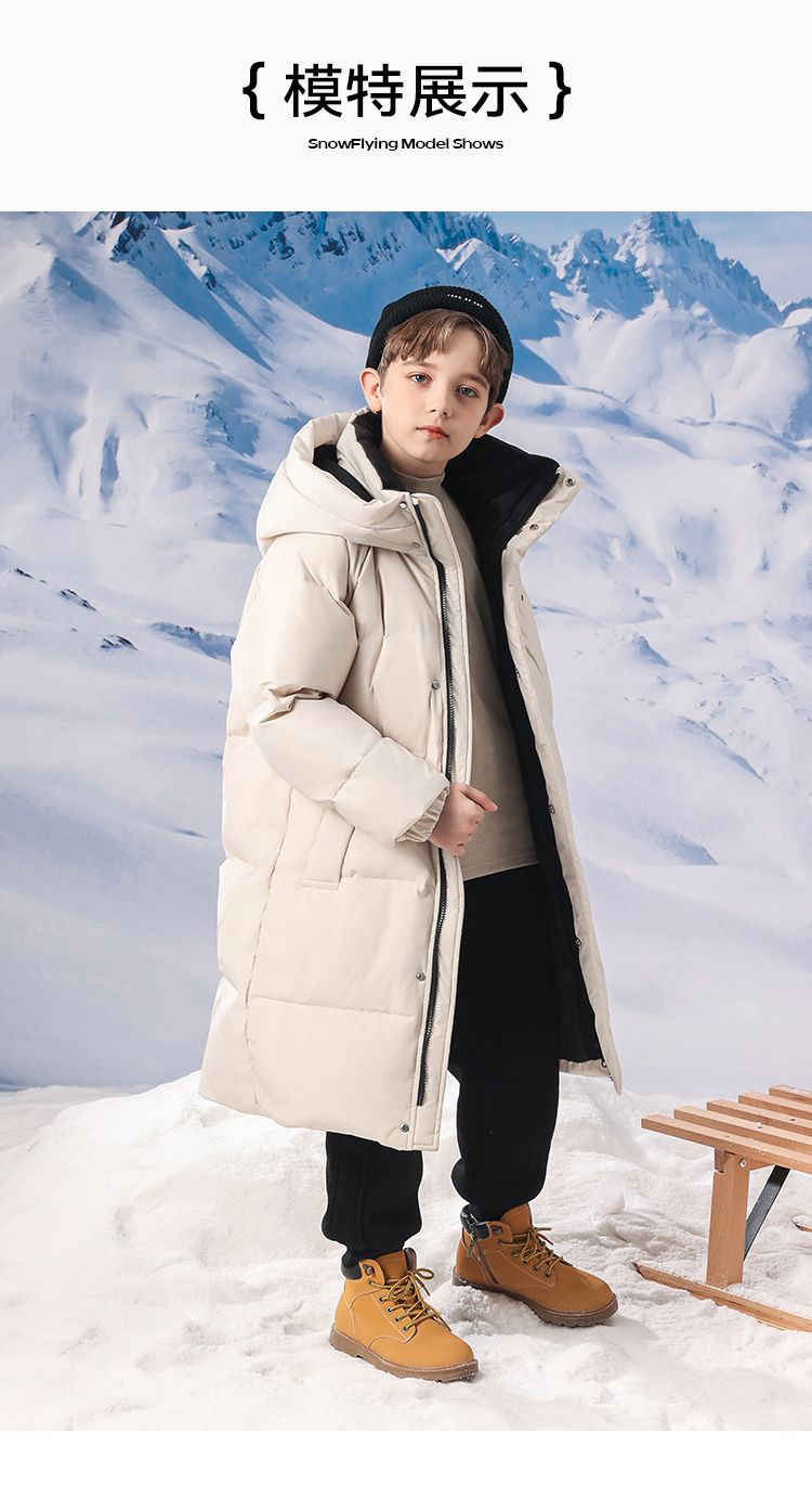 Детский пуховик в корейском стиле для мальчиков, зимний модный теплый пуховик средней длины ниже колена с капюшоном, серый, на утином пуху, для девочек постарше.