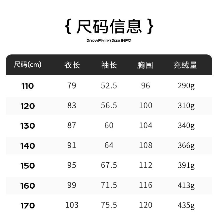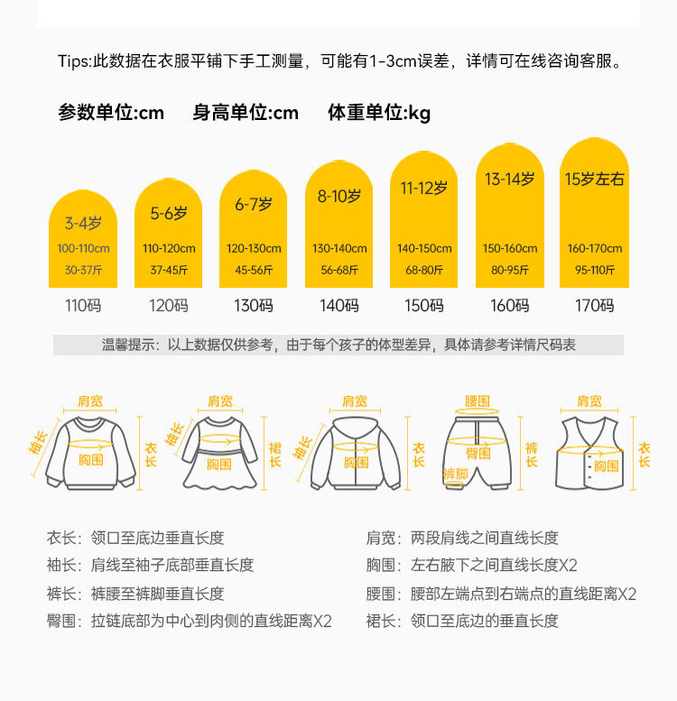 110cm; 120cm; 130cm; 140cm; 150cm; 160cm; 170cm