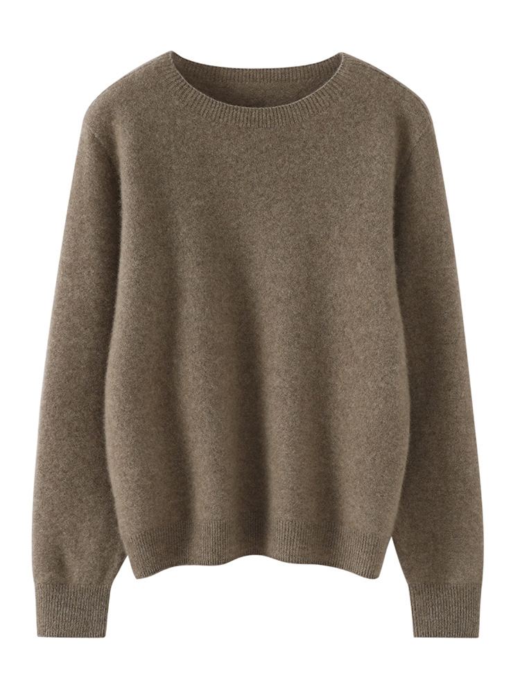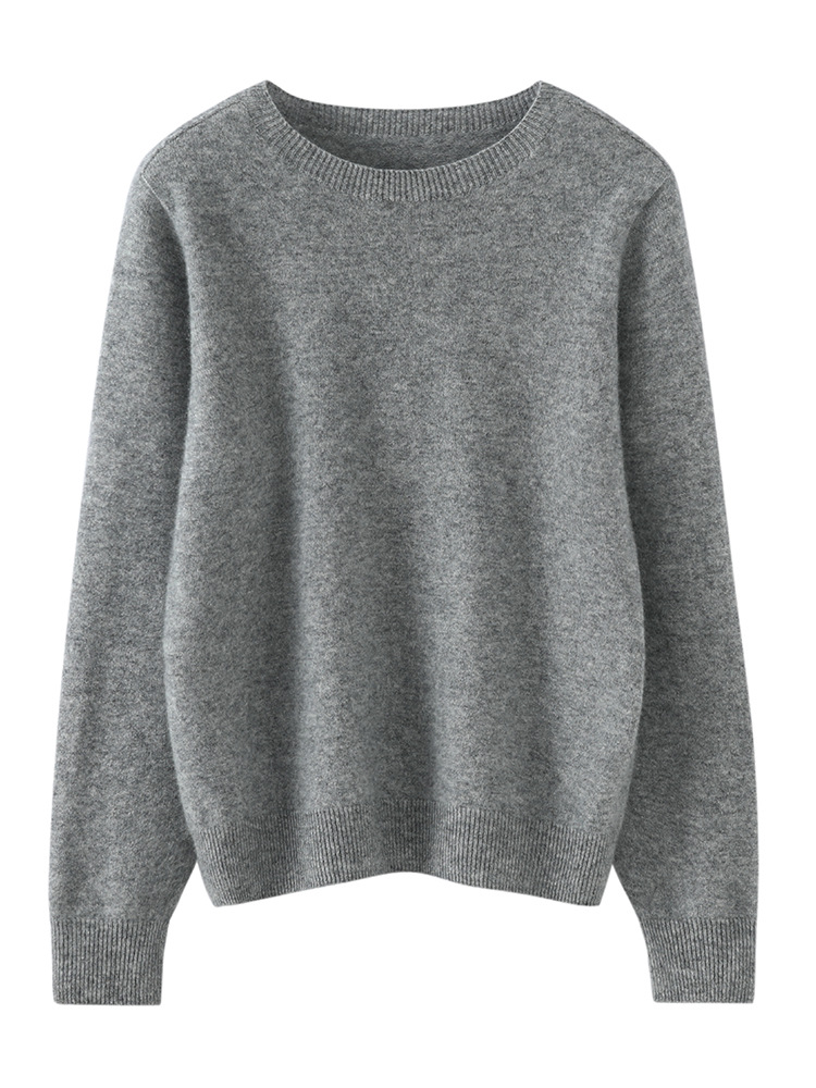 100% чистый кашемировый свитер для женщин, трикотаж с круглым вырезом, готовый к носке вязаный базовый слой, теплый, мягкий, свободного кроя, внутренний слой.