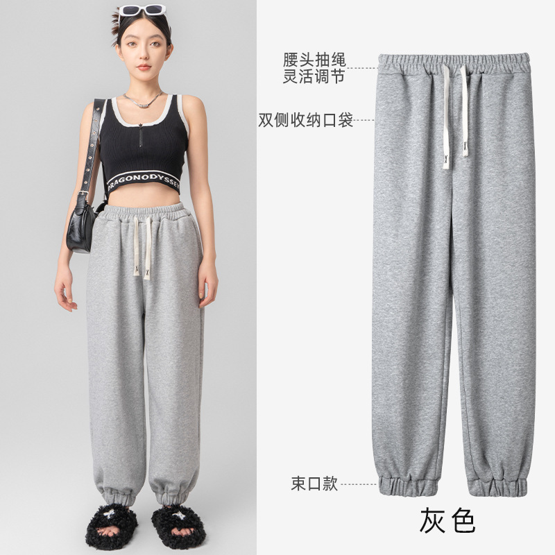 Новые брюки женские осенние и зимние плюшевые студенты корейские свободные прямые повседневные дикие спортивные брюки брюки
