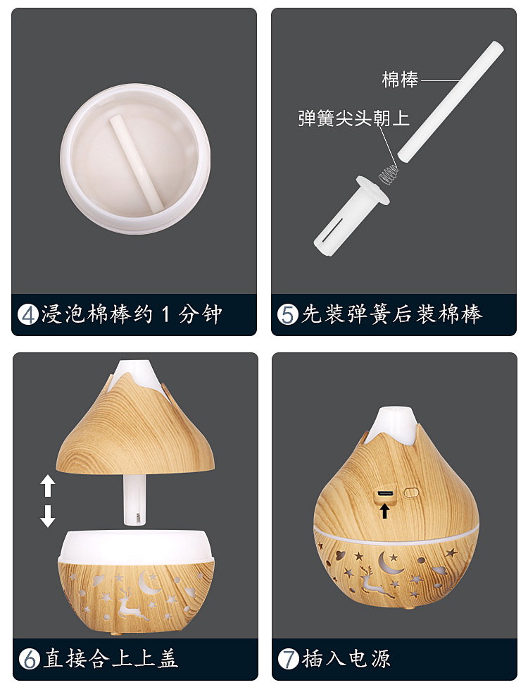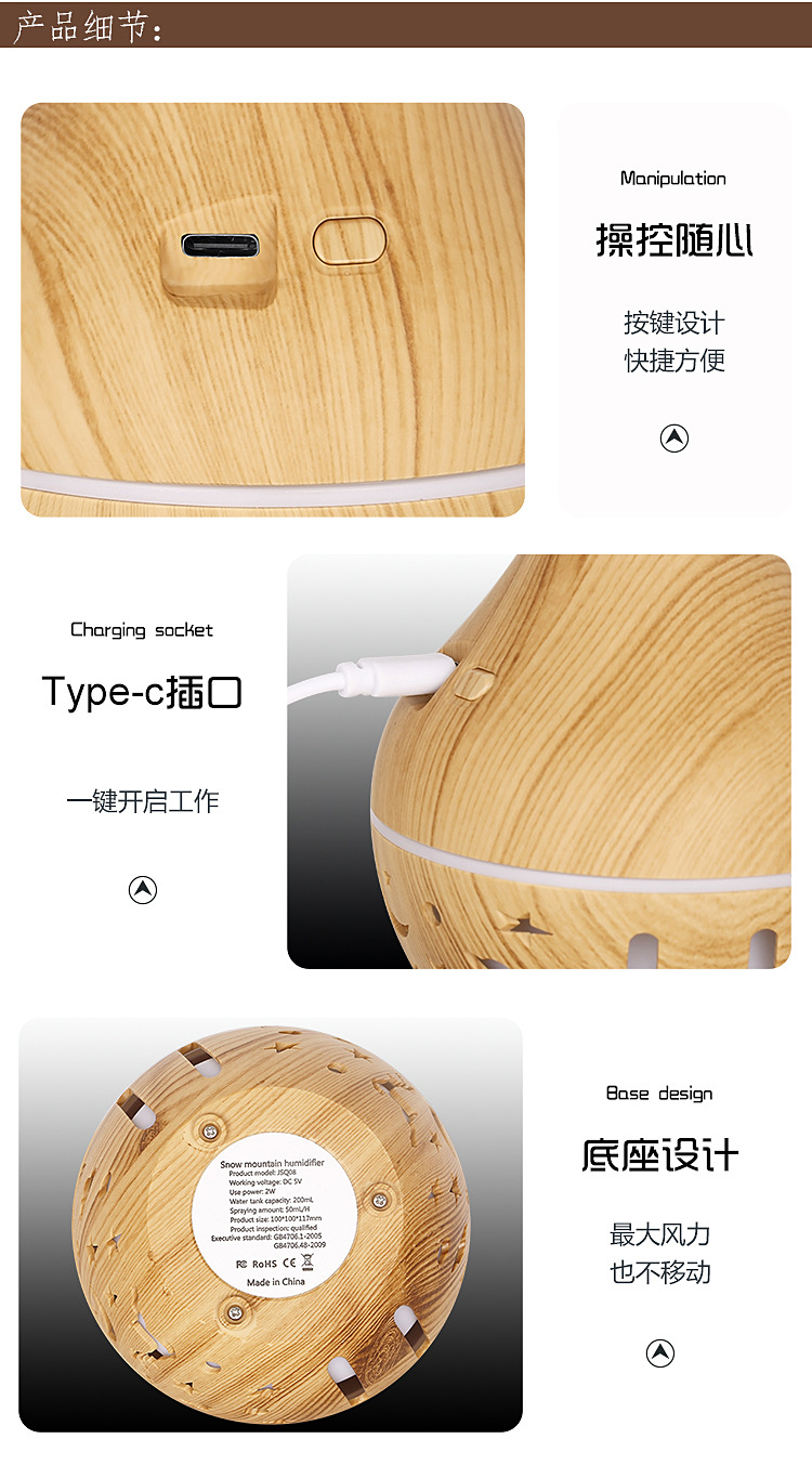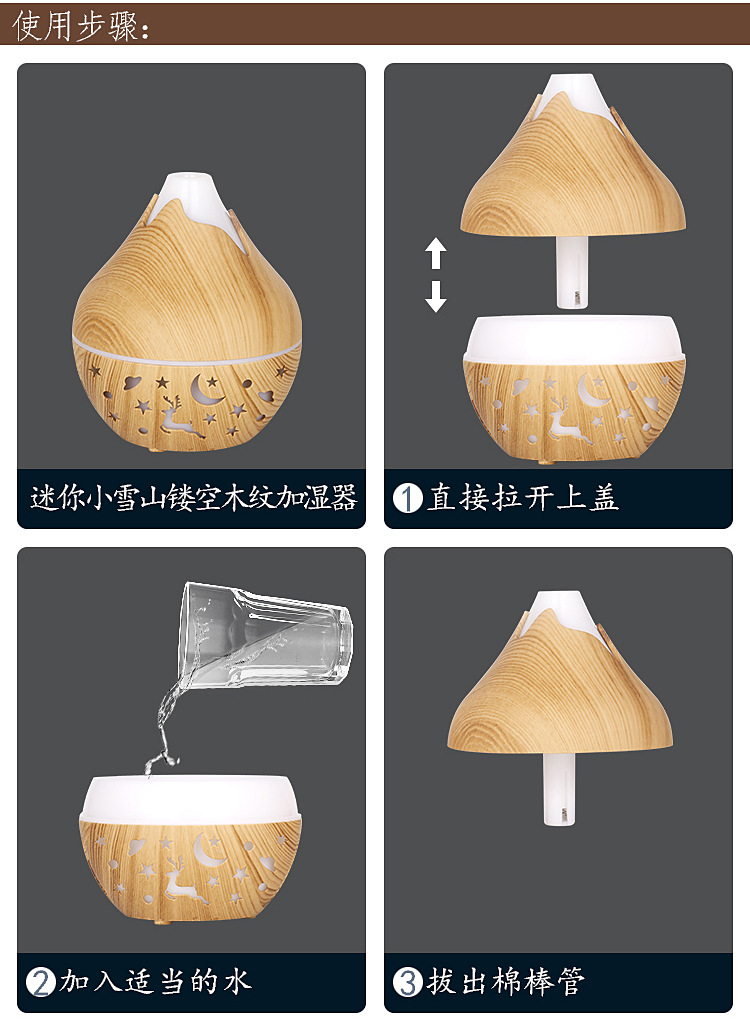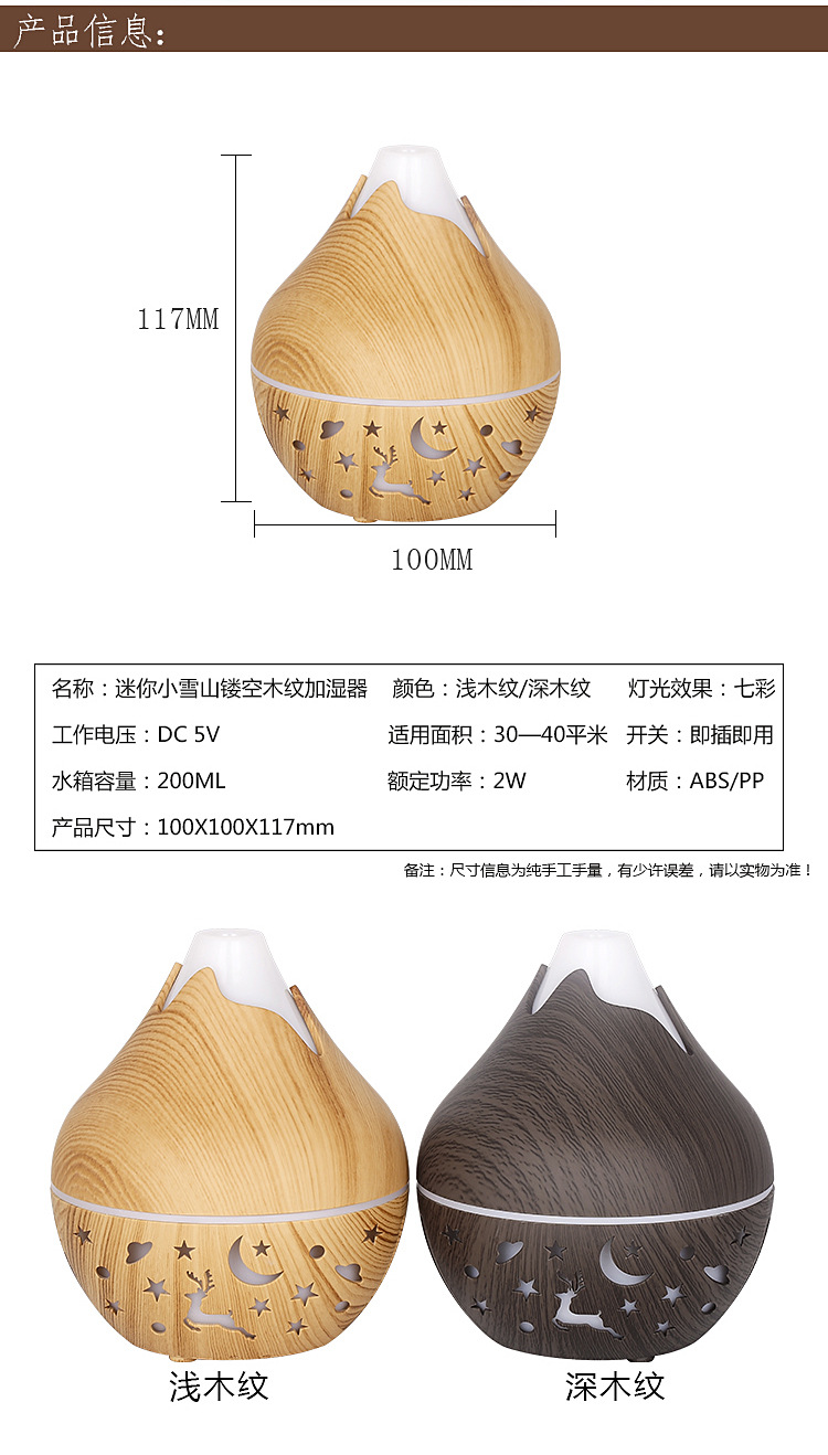 Мини-полый увлажнитель Snow Mountain — светлое деревянное зерно; Мини-полый увлажнитель «Снежная гора» — текстура темного дерева; Мини-полый увлажнитель Snow Mountain – белый; Мини-полый увлажнитель Snow Mountain-розовый