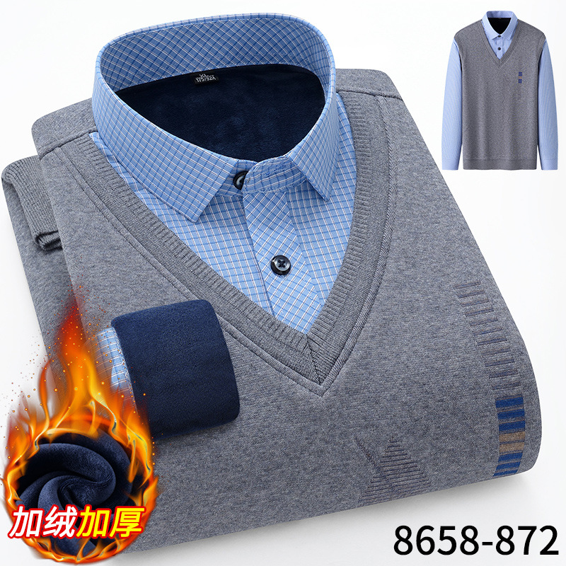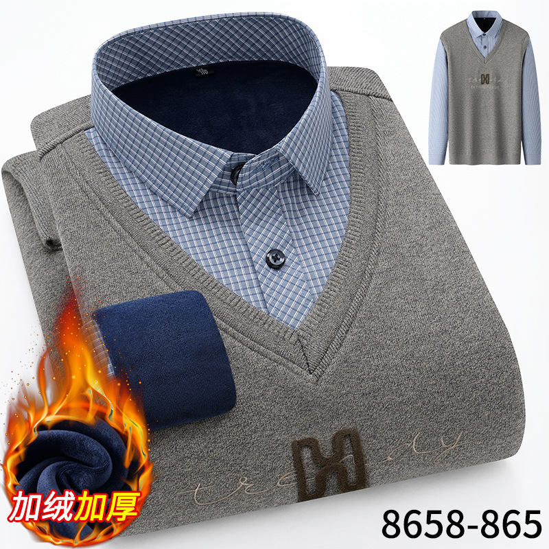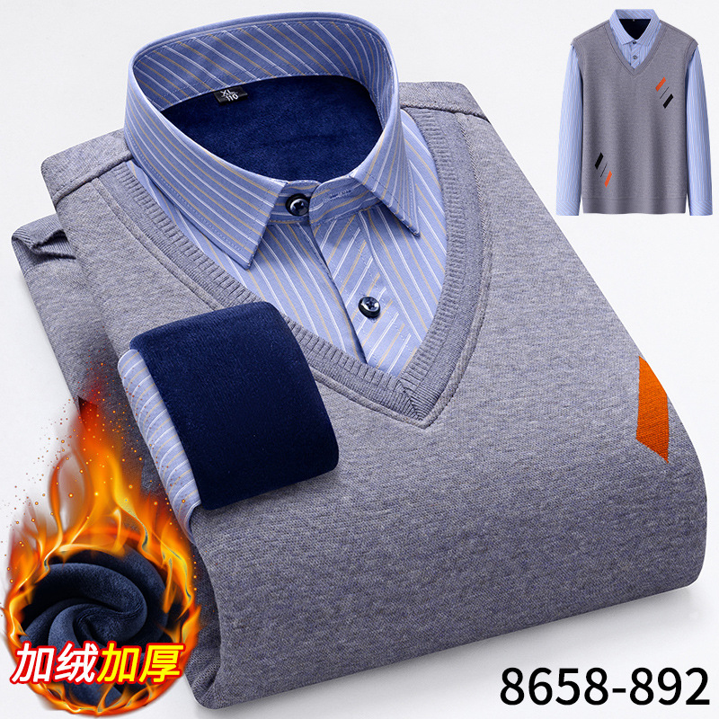 2024 зимние поддельные две теплые рубашки плюс бархатный хлопок