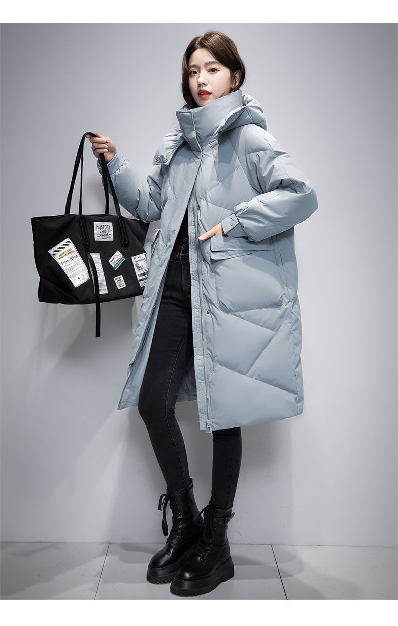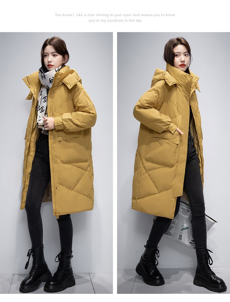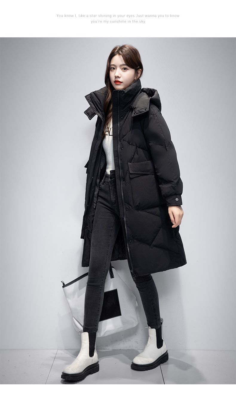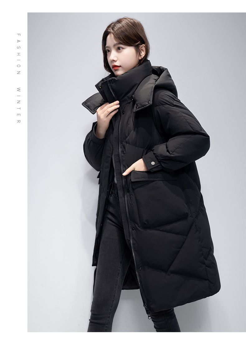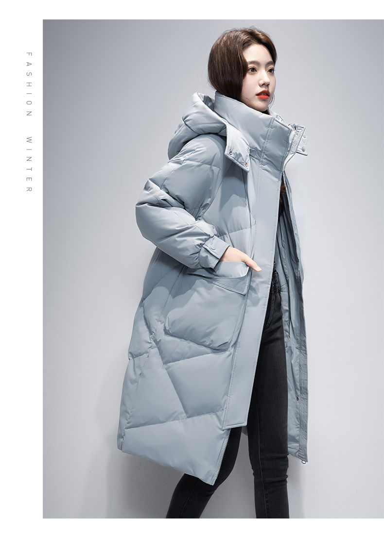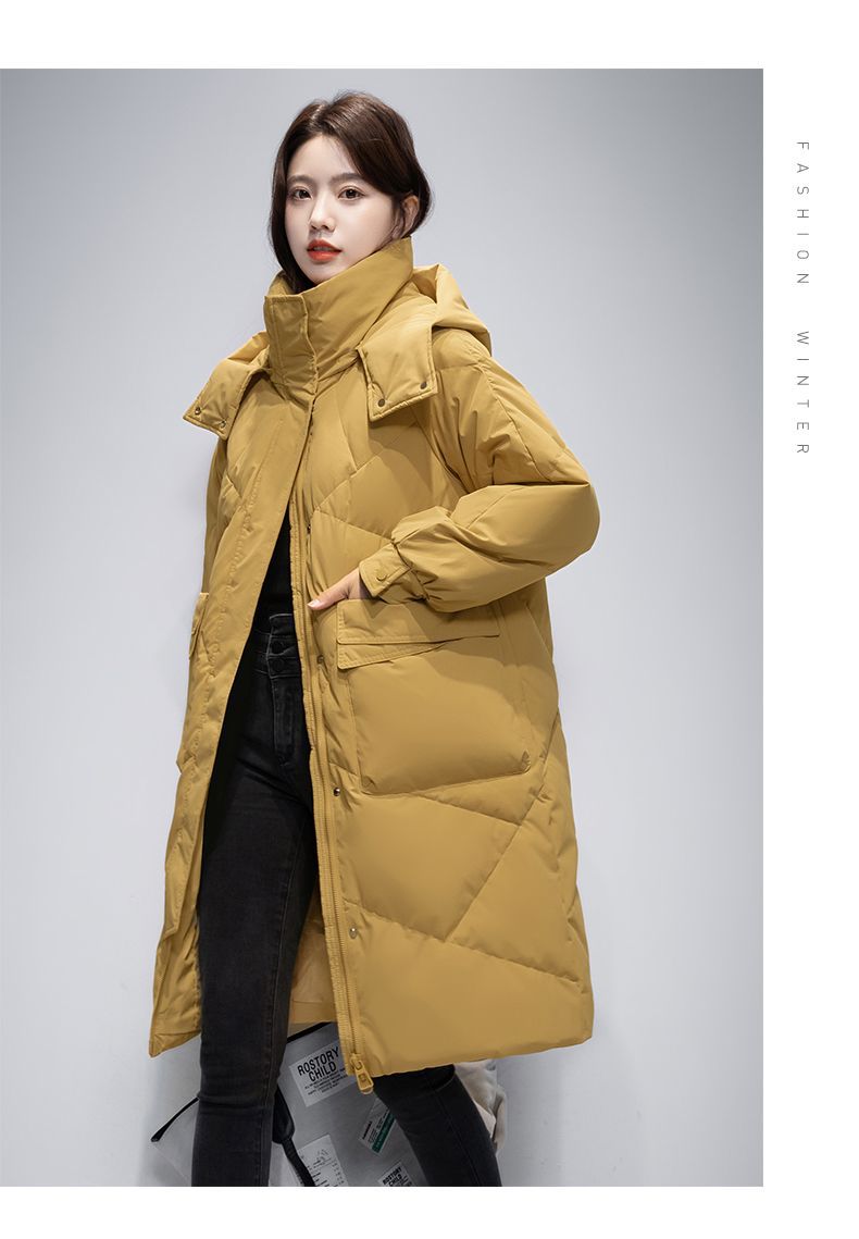 Женская удлиненная пуховая куртка 2025 года, новая зимняя модель в корейском стиле, повседневная модная утепленная теплая пуховая куртка оптом
