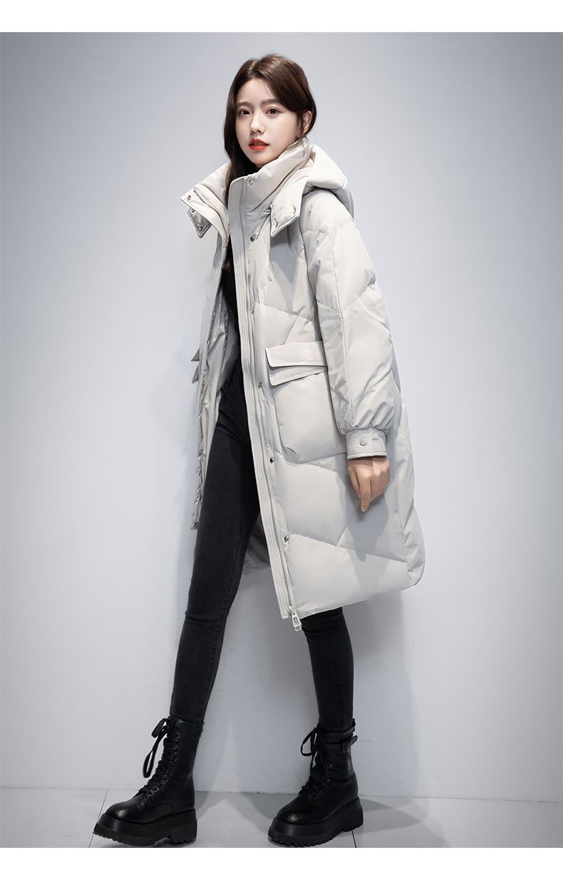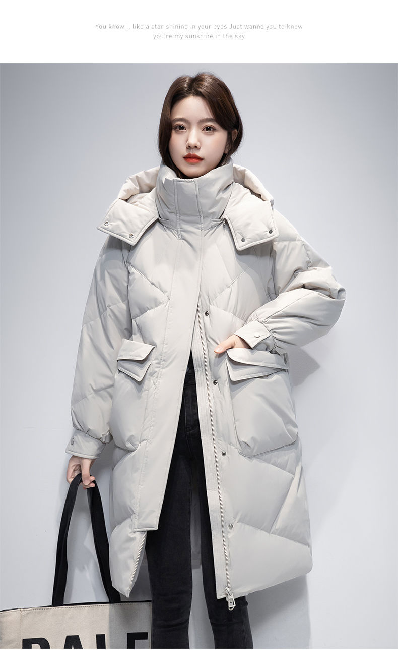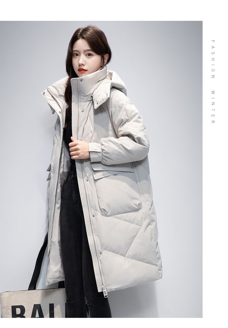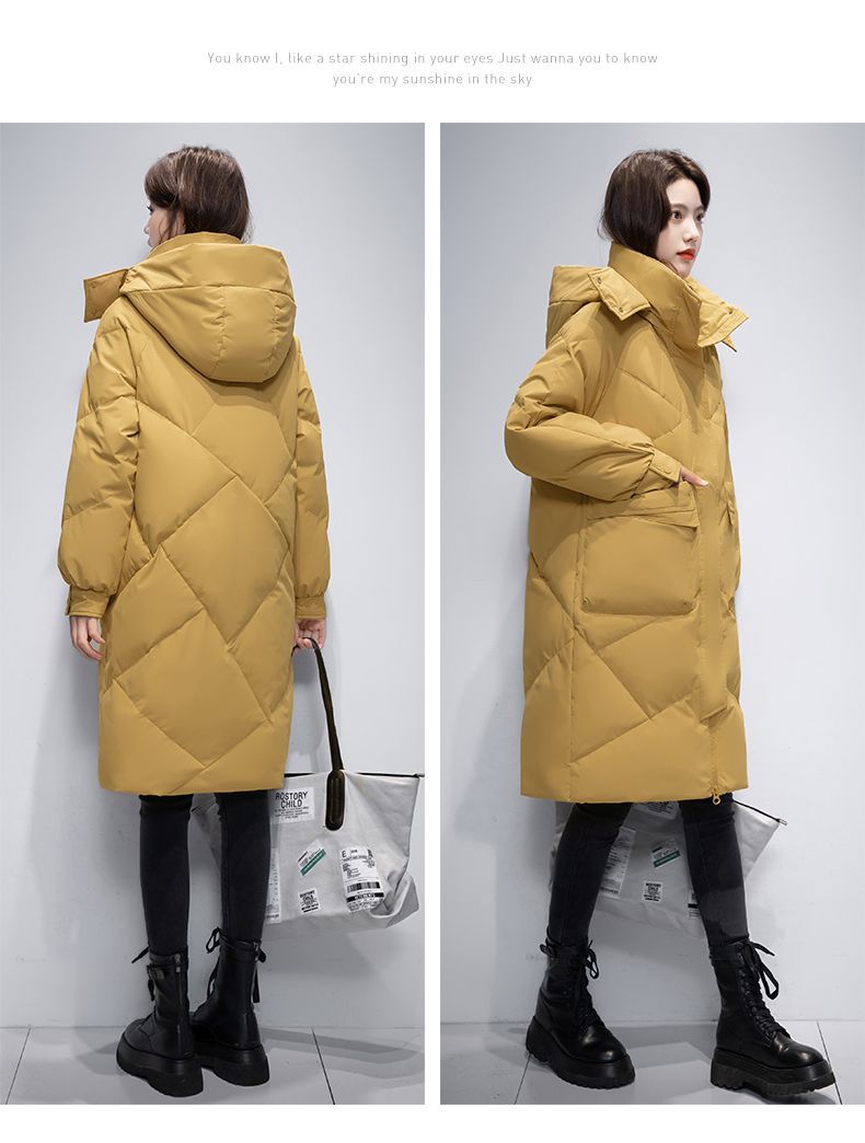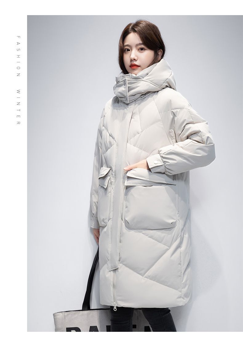 Женская удлиненная пуховая куртка 2025 года, новая зимняя модель в корейском стиле, повседневная модная утепленная теплая пуховая куртка оптом