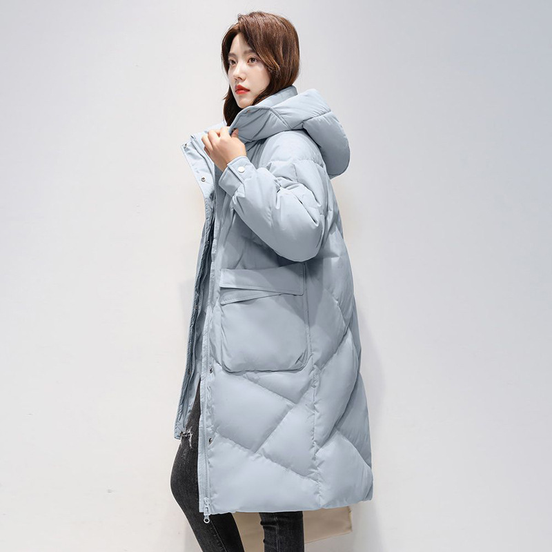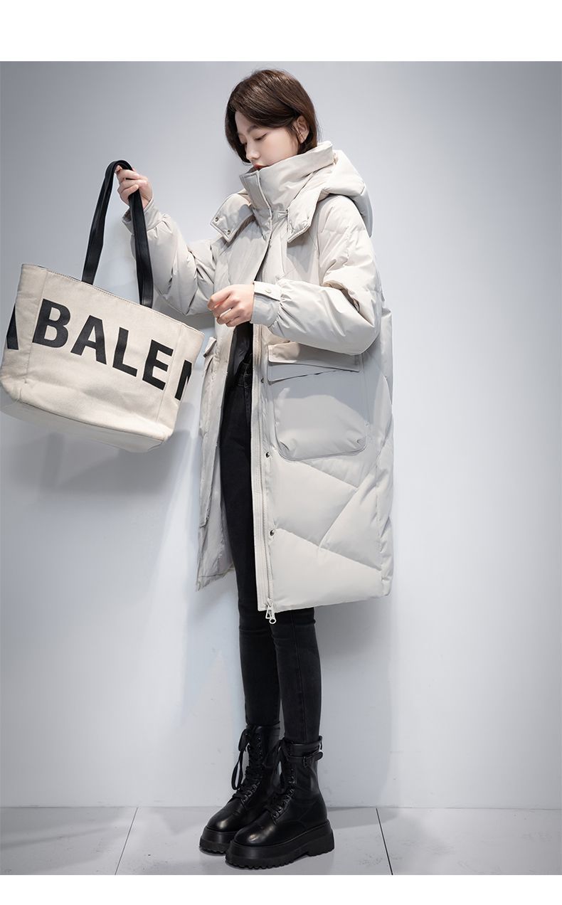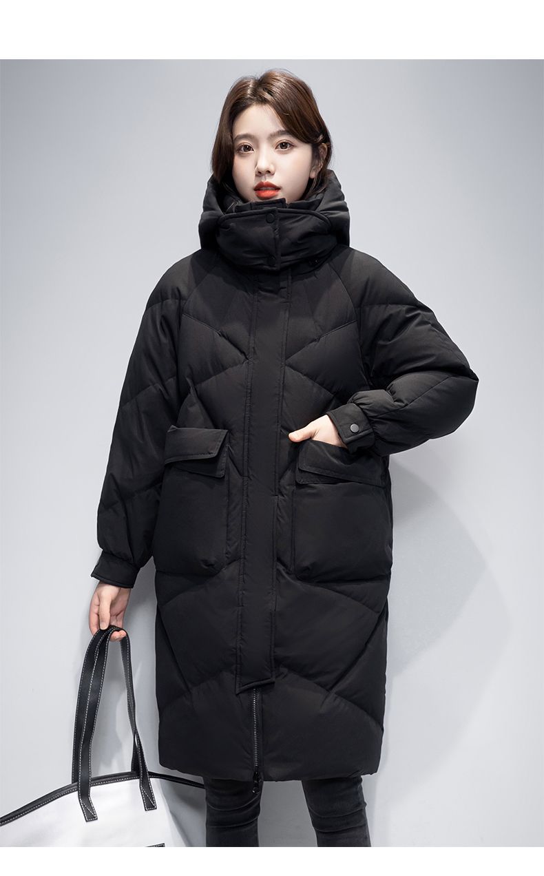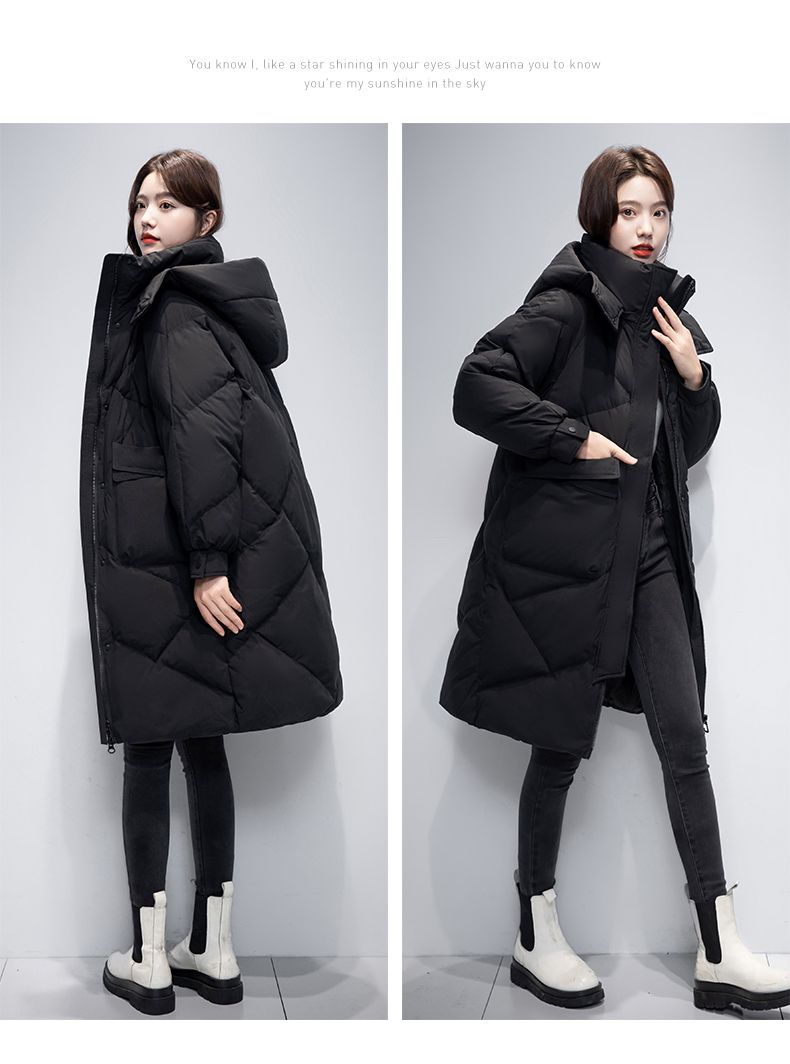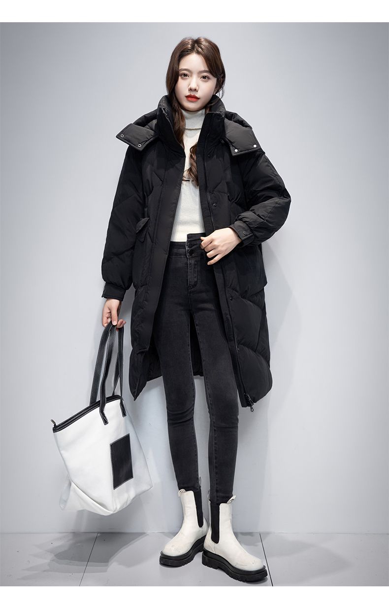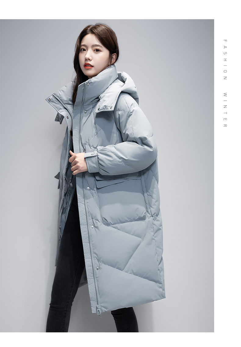 Женская удлиненная пуховая куртка 2025 года, новая зимняя модель в корейском стиле, повседневная модная утепленная теплая пуховая куртка оптом