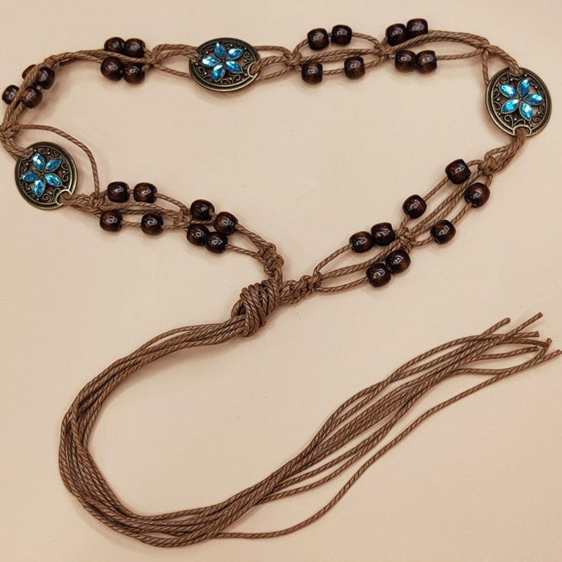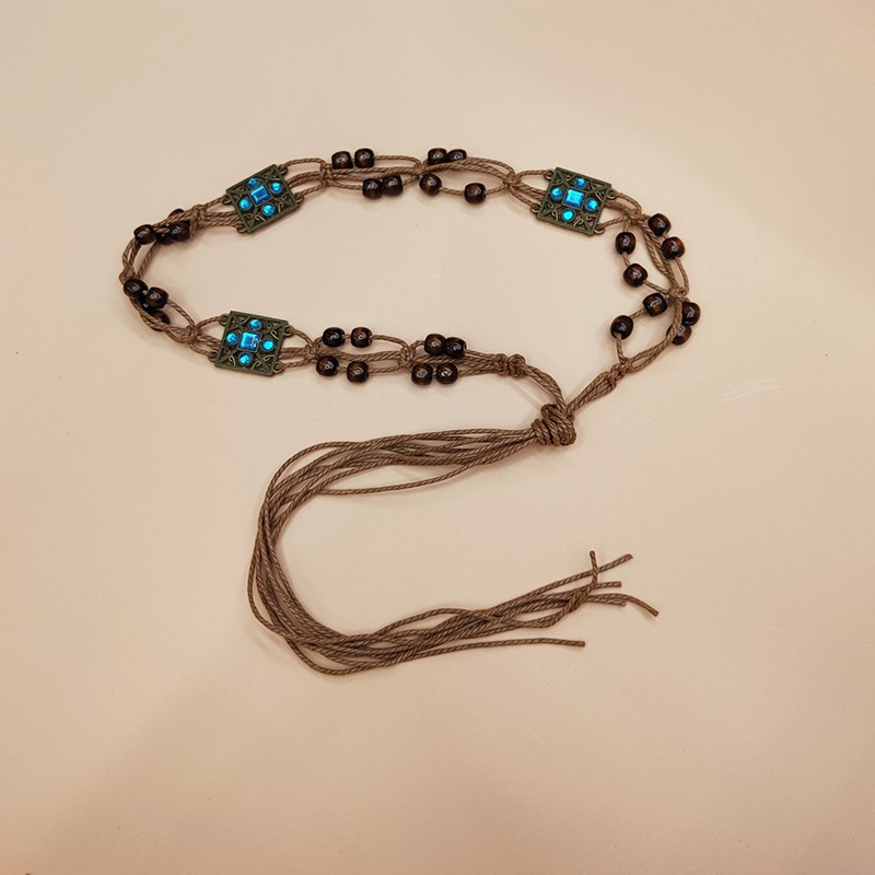 Винтажный универсальный тканый поясной канат, богемный женский аксессуар на талию, ремень, этнический кожаный ремень, декоративная повседневная поясная цепочка в корейском стиле