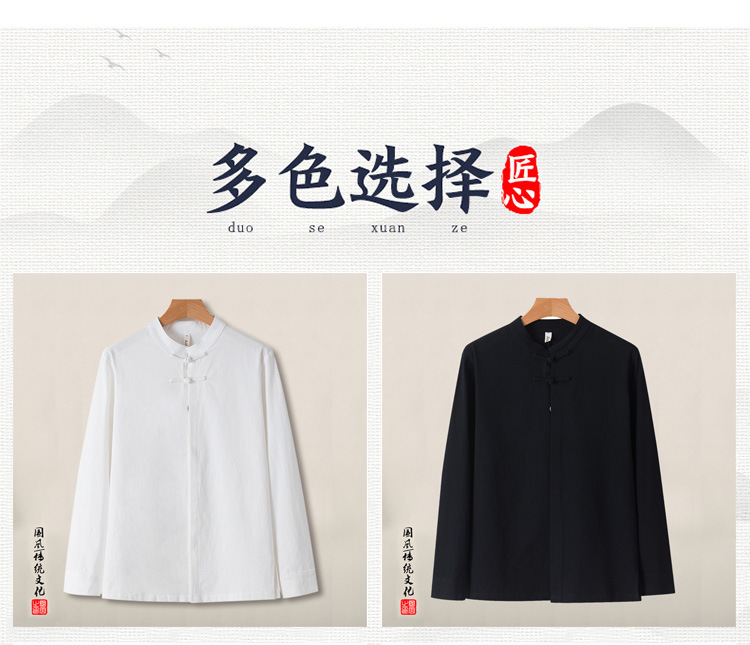 2024 осенний костюм новый китайский стиль мужской ретро хлопчатобумажная льняная рубашка с длинными рукавами набор мужской пуговицы китайский набор из двух частей PI