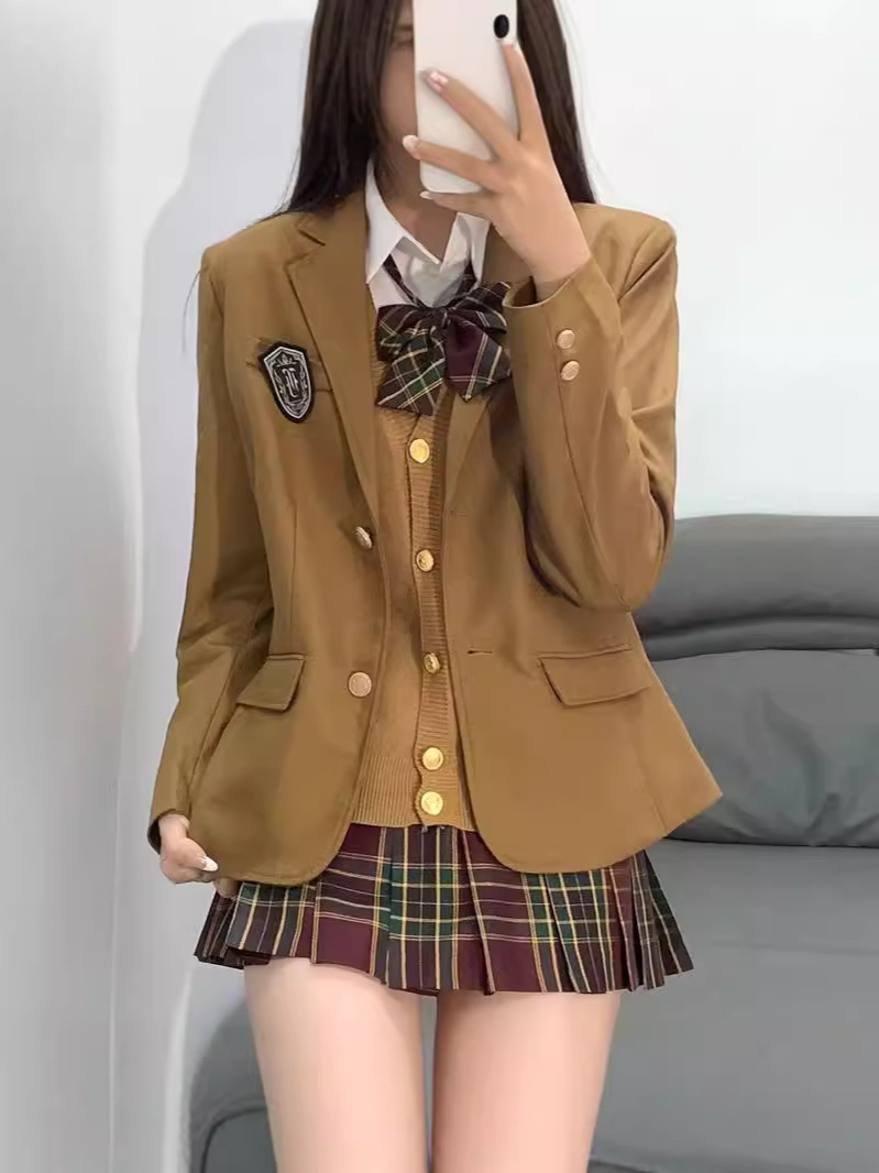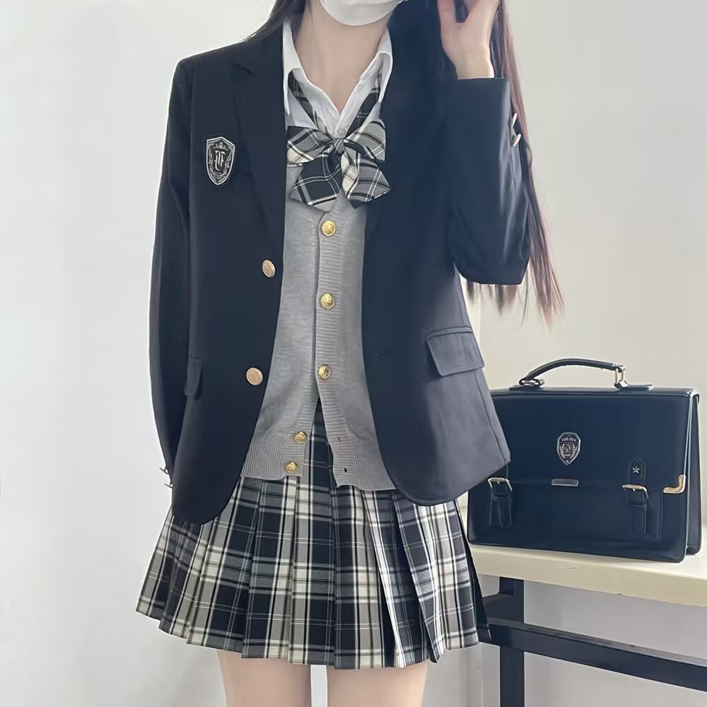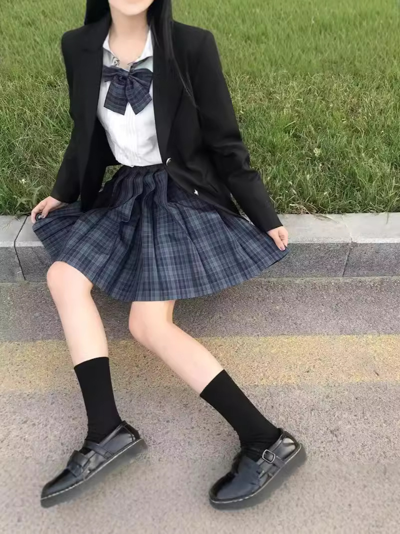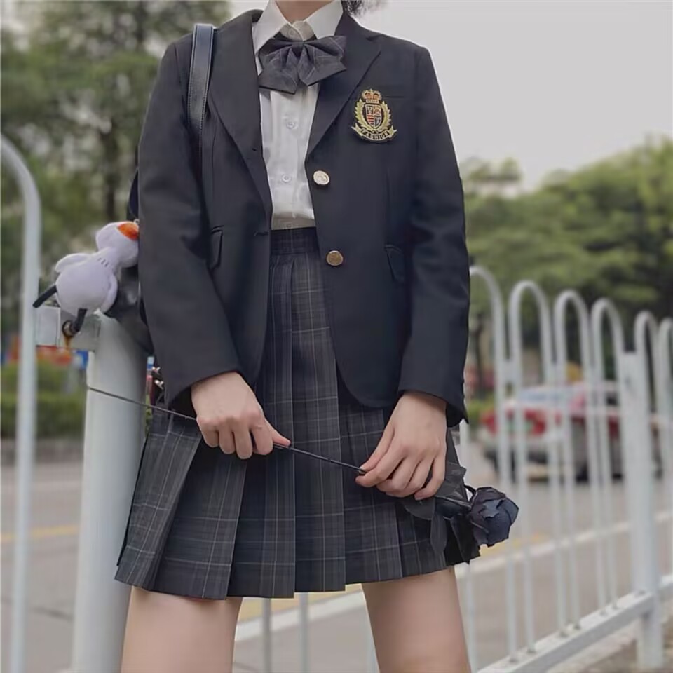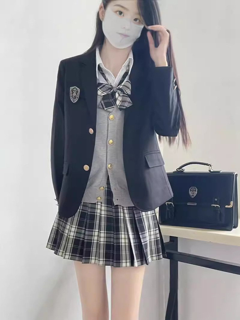 Темно-синий костюм на 2 пуговицы + клетчатая юбка из морских водорослей + белая рубашка с длинными рукавами + галстук-бабочка + большой значок с вышивкой зимы; Черный костюм на 2 пуговицы + клетчатая юбка из морских водорослей + белая рубашка с длинными рукавами + галстук-бабочка + зимние исследования, большой вышитый значок; Черный костюм на 2 пуговицы + угольно-серая клетчатая юбка + белая рубашка с длинными рукавами + галстук-бабочка + зимние исследования, большой вышитый значок; Черный костюм на 2 пуговицы + клетчатая юбка коричневого сахара, имбиря, чая + белая рубашка с длинными рукавами + галстук-бабочка + большой вышитый значок зимнего голуба; Черный костюм на 3 пуговицы + клетчатая юбка коричневого сахара, имбиря, чая + белая рубашка с длинными рукавами + галстук-бабочка + большой вышитый значок зимнего голуба; Черный костюм на одной пуговице + клетчатая юбка коричневого сахара, имбиря, чая + белая рубашка с длинными рукавами + галстук-бабочка + большой вышитый значок зимнего голуба; Черный костюм на 2 пуговицы + черно-белая клетчатая юбка + белая рубашка с длинными рукавами + галстук-бабочка + зимние исследования, большой вышитый значок; Черный костюм на 2 пуговицы + юбка в клетку Dalan + белая рубашка с длинными рукавами + галстук-бабочка + зимние исследования, большой вышитый значок; Коричневый костюм на 2 пуговицы + клетчатая юбка глоду + белая рубашка с длинными рукавами + галстук-бабочка + большой значок зимнего белья с вышивкой