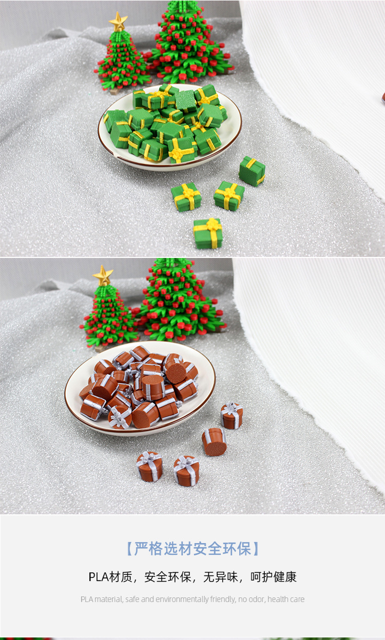 Тип А красный подарок; Подарок цвета хаки типа B; Темно-зеленый подарок в стиле C; Оранжевый подарок типа D; E фиолетовые подарки; F небесно-голубой подарок