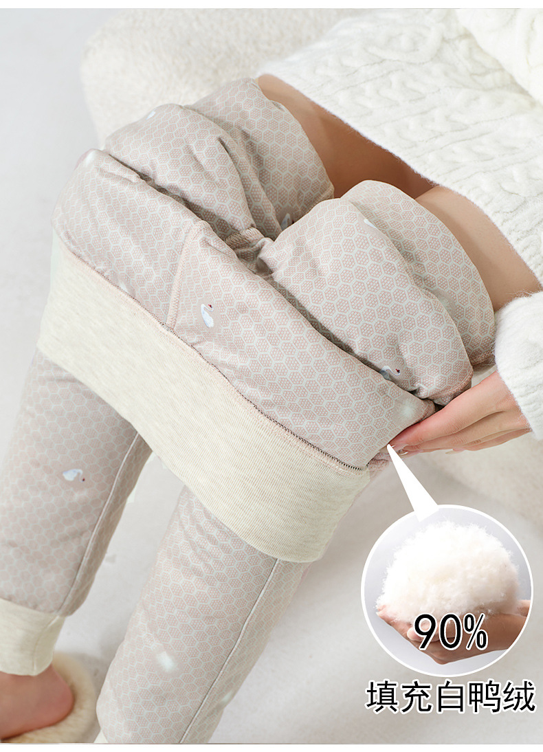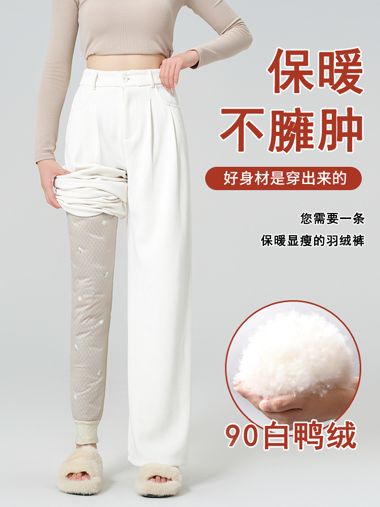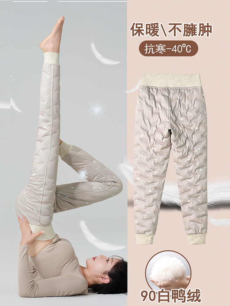 Пуховые брюки для женщин зимой 2024 новые бархатные толстые белые утиные бархатные леггинсы северо-восточные толстые теплые хлопчатобумажные брюки