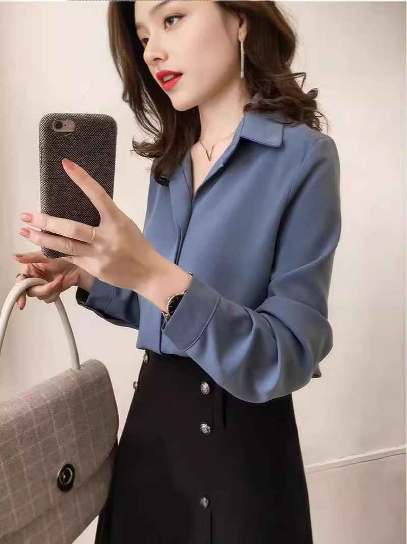 Трансграничная оптовая торговля 2024 весна и лето новый корейский свободный большой размер смайлика с длинными рукавами профессиональная одежда рубашка OL прилив