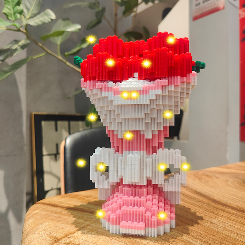 Строительные блоки, милый медведь, доставка цветов, агрессивный медведь, детская игрушечная головоломка, подарок на день рождения, подарок на китайский день святого Валентина.
