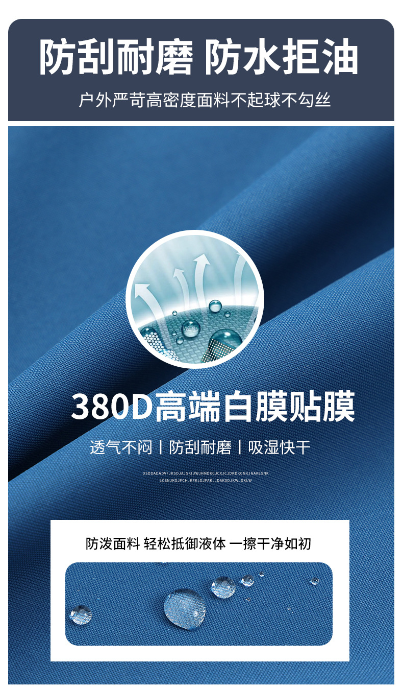 面料:380D 高端白膜贴膜