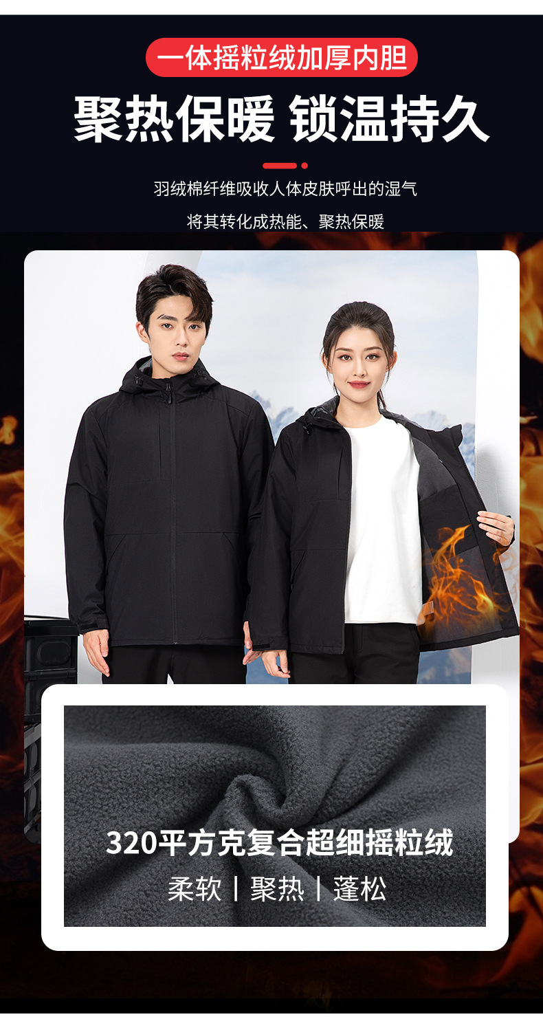 品名:7701# 加厚摇粒绒连帽一体冲锋衣