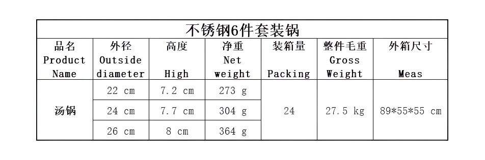 Экспорт филиппинской нержавеющей стали набор кастрюль 22/24/26cm6 шт набор супа цветная коробка подарочная cookware