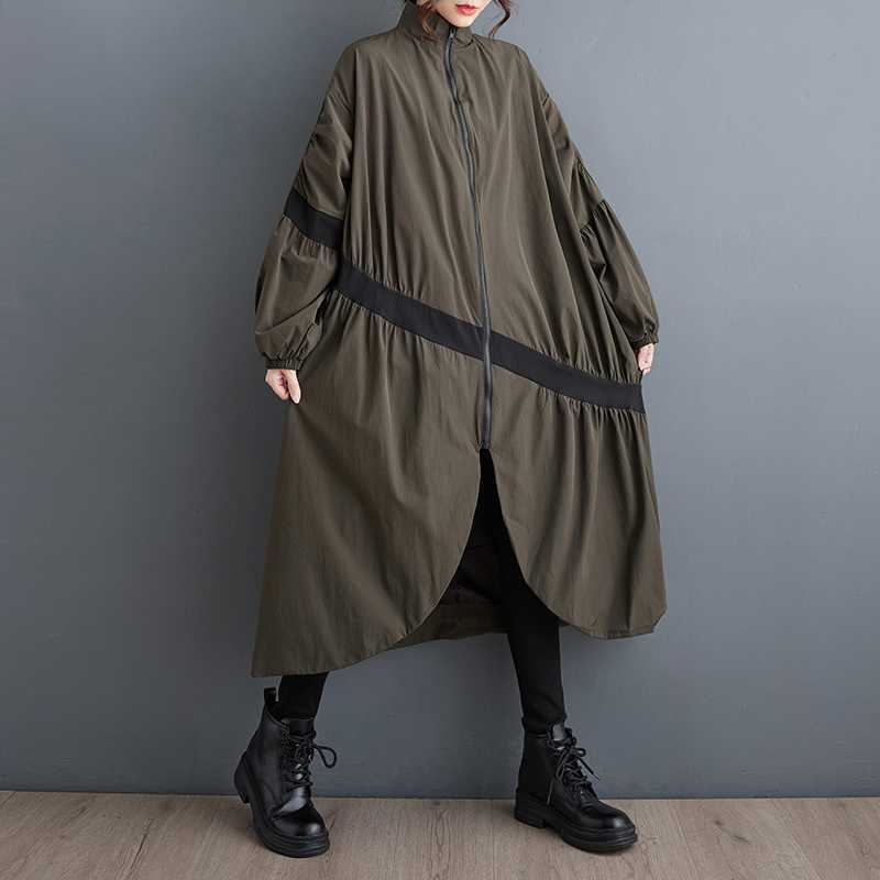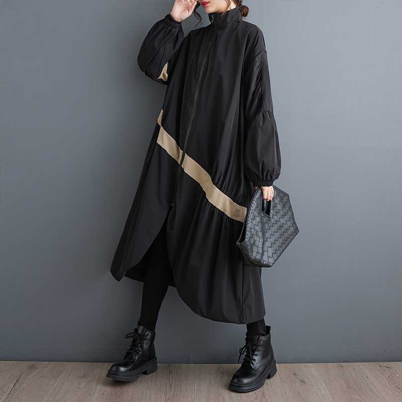 Рекордная съемка осенней и зимней корейской версии контрастного цвета с небольшими рукавами фонаря модная ветровка нерегулярный подол тонкая куртка на молнии