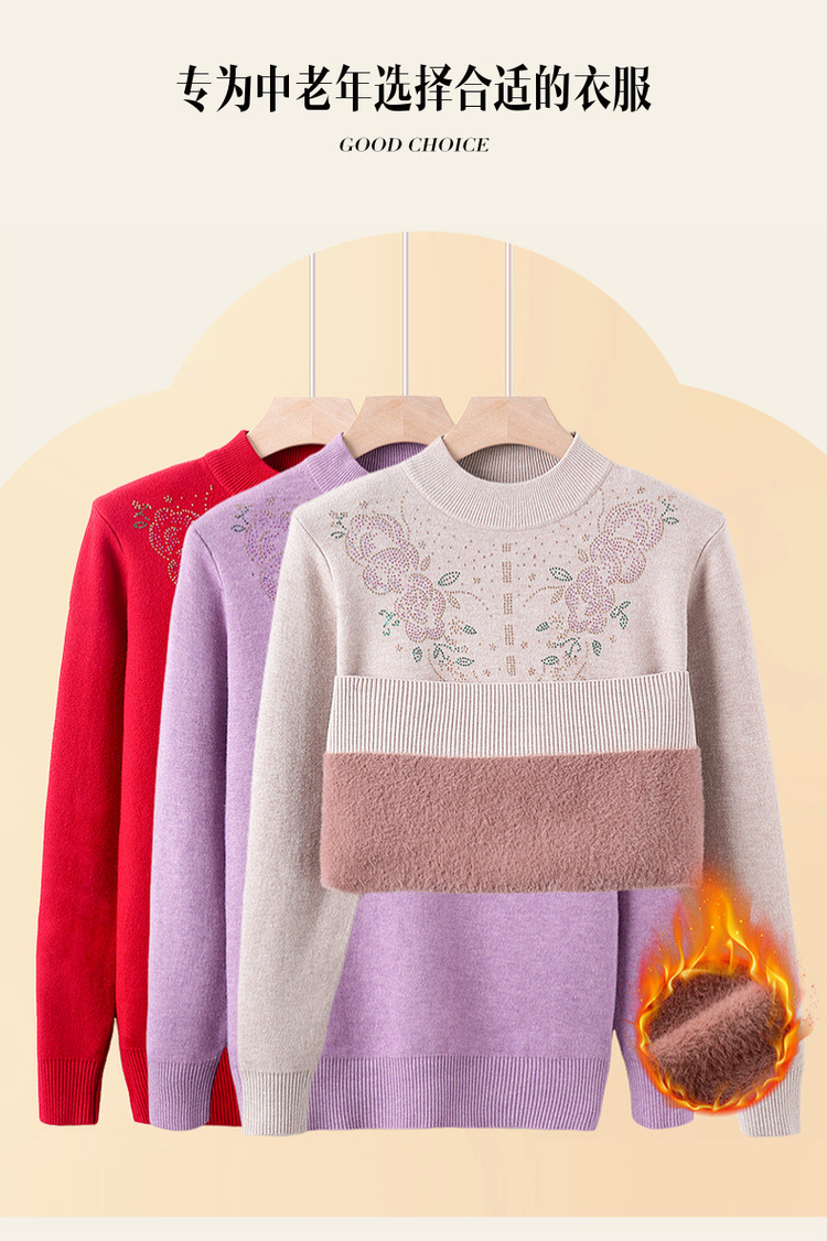 Новая мама одеваются осенью и зимой плюс бархатный свитер для пожилых женщин