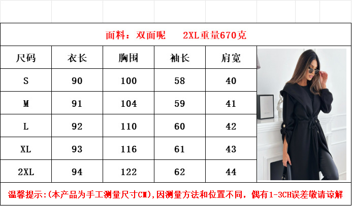 2024 европейские и американские осенние и зимние новые темпераментные модные лацканы и веревки ветровки длинные сплошные шерстяные пальто для талии женская одежда