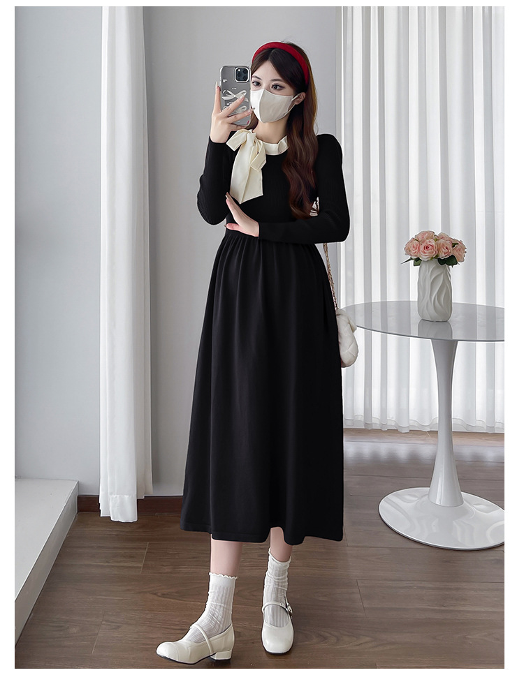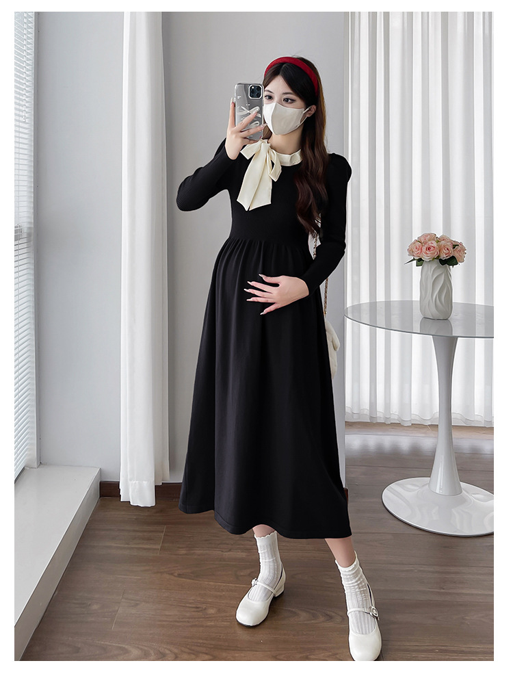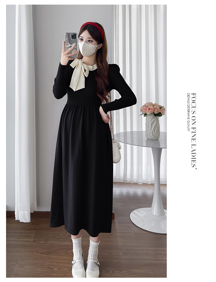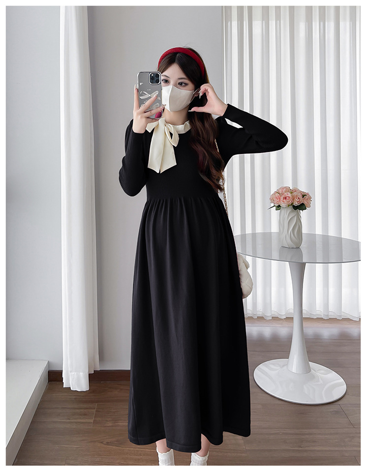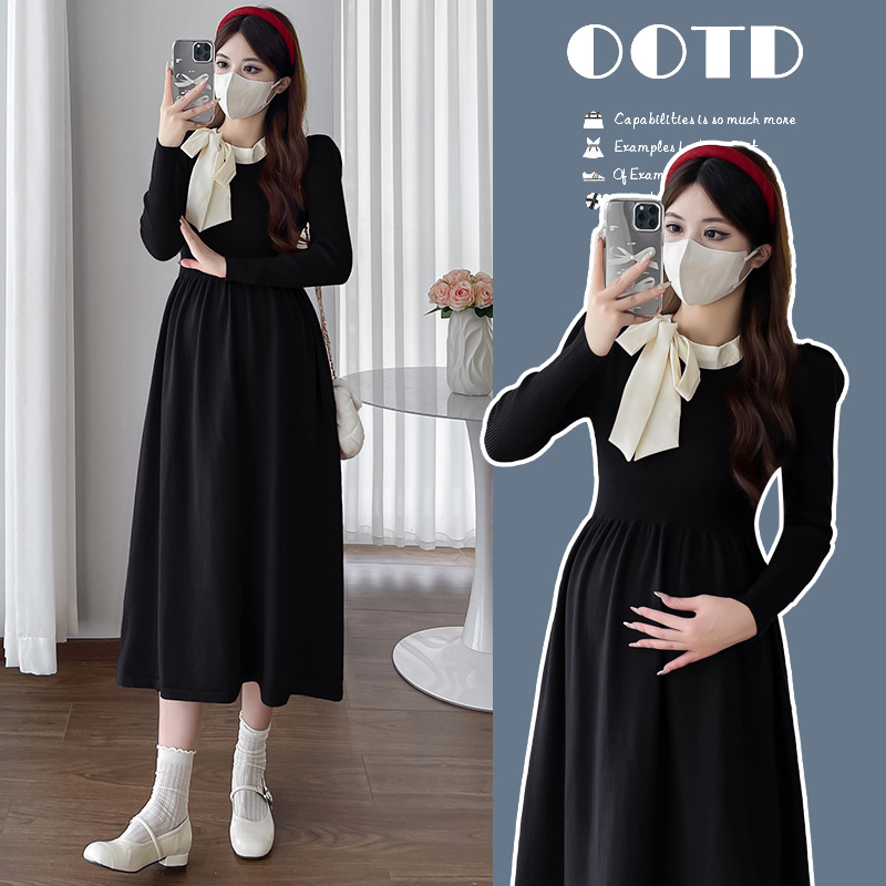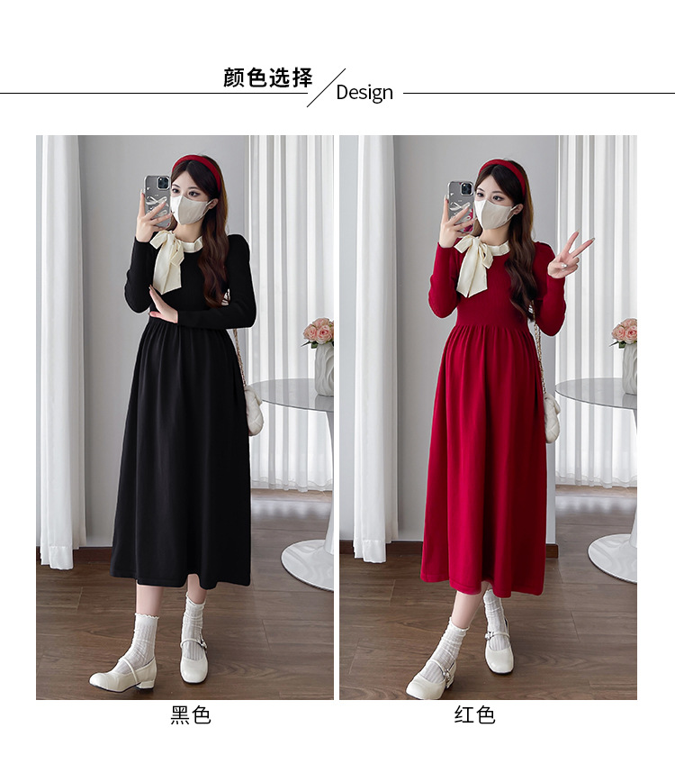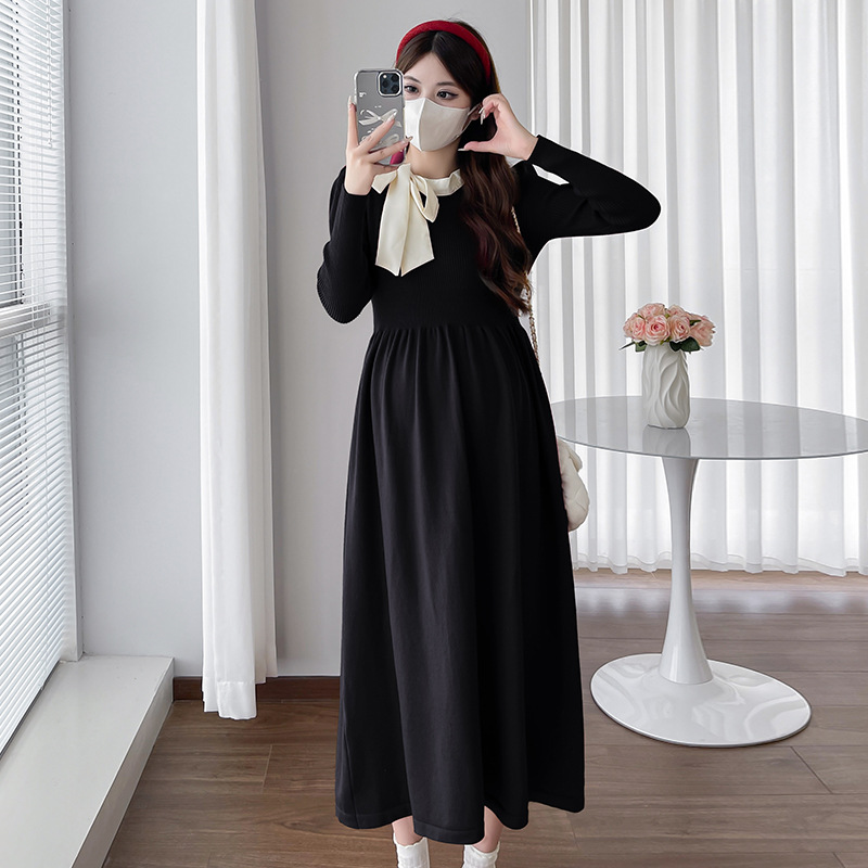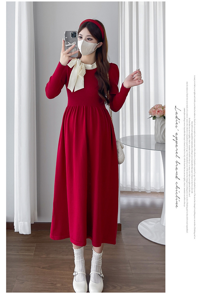 Красное платье для кормящих мода маленький ароматный бант большой размер толстый вязаный свитер для беременных осенью и зимой