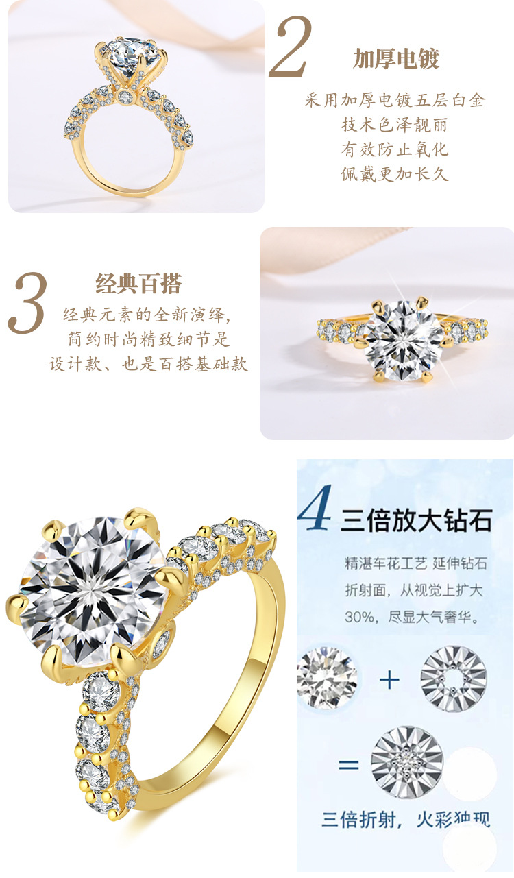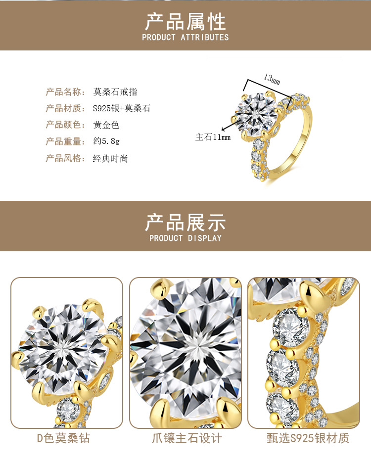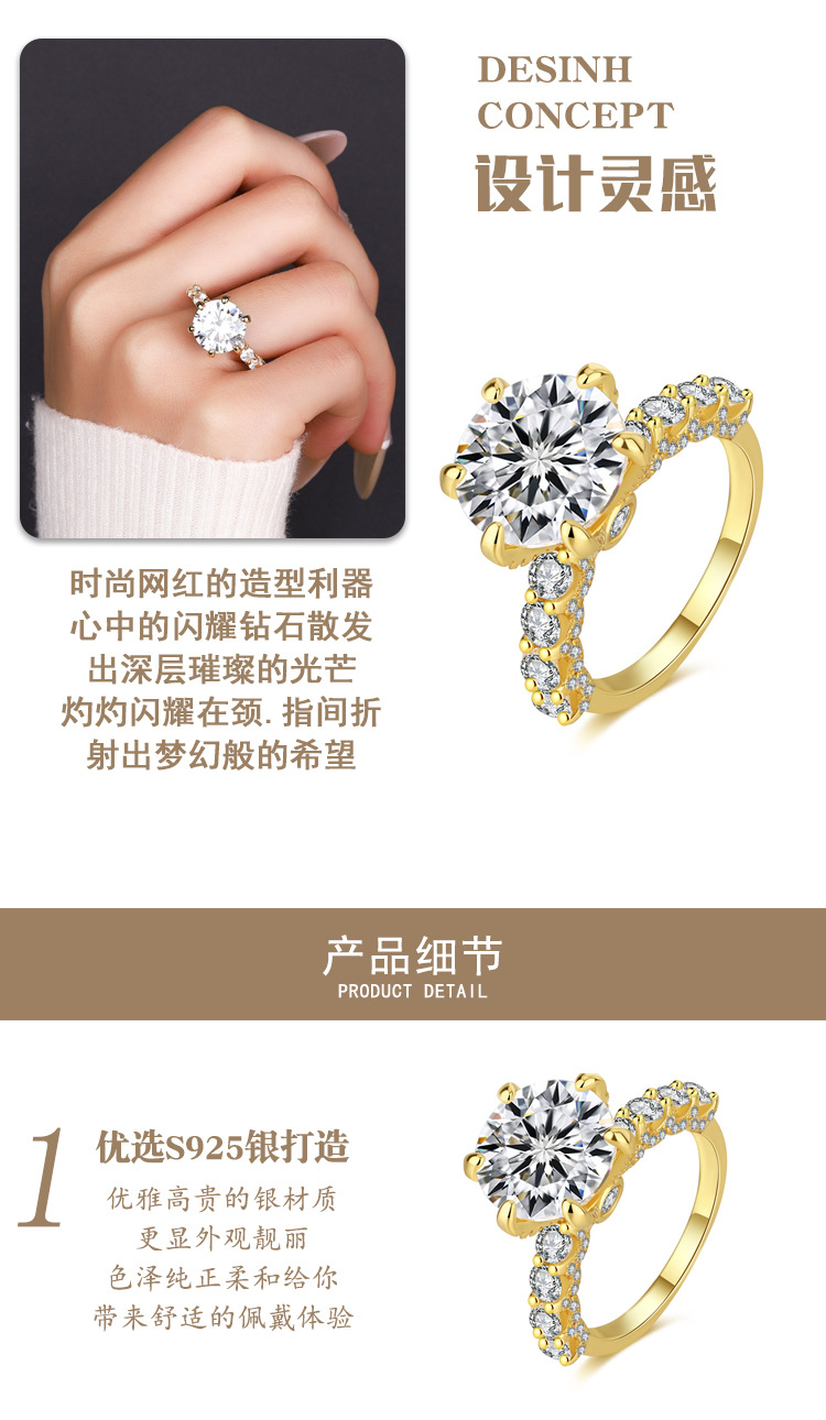 S925 Серебряное кольцо Muzao Hao Кольцо 5 карат Золотое кольцо Трансграничная Amazon temu Горячая Распродажа Новая