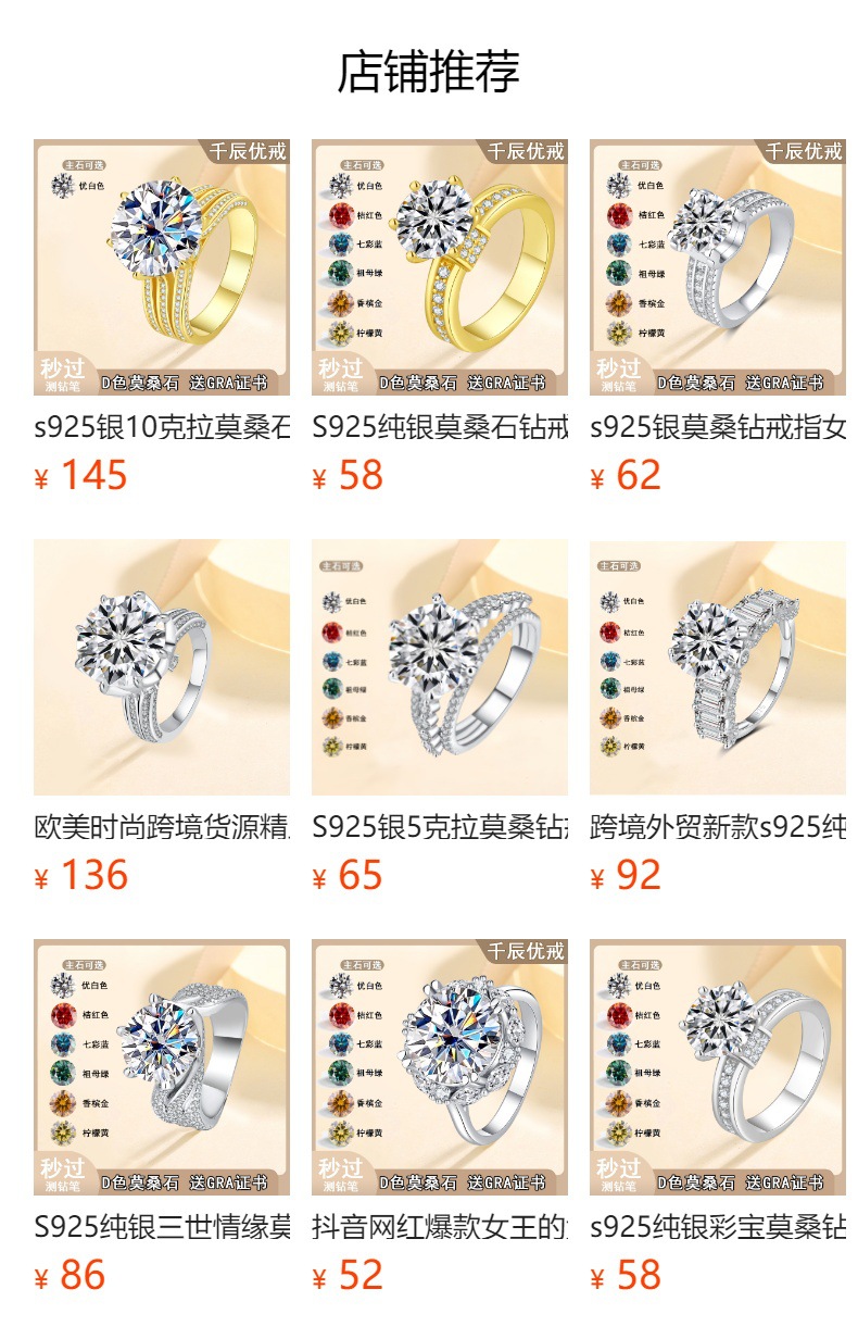 2 карата (циркон «восемь сердец и восемь стрел»); 2-каратный муассанитовый бриллиант (сертификат GAR); 2 карата оранжево-красный (сертификат GAR); 2 карата, ярко-синий (сертификат GAR); Изумруд 2 карата (сертификат GAR); 2 карата шампанское золото (сертификат GAR); 2 карата лимонно-жёлтого цвета (сертификат GAR); 3 карата (циркон «восемь сердец и восемь стрел»); 3-каратный муассанитовый бриллиант (сертификат GAR); 3 карата оранжево-красный (сертификат GAR); 3 карата, ярко-синий (сертификат GAR); Изумруд 3 карата (сертификат GAR); 3 карата шампанское золото (сертификат GAR); 3 карата лимонно-жёлтого цвета (сертификат GAR); 5 карат (восемь сердец и восемь стрелок цирконов); 5-каратный муассанит (сертификат GAR); 5 карат оранжево-красный (сертификат GAR); 5 карат, яркий синий (сертификат GAR); Изумруд 5 карат (сертификат ГАР); Золото цвета шампанского 5 карат (сертификат GAR); 5 карат лимонно-желтый (сертификат GAR)