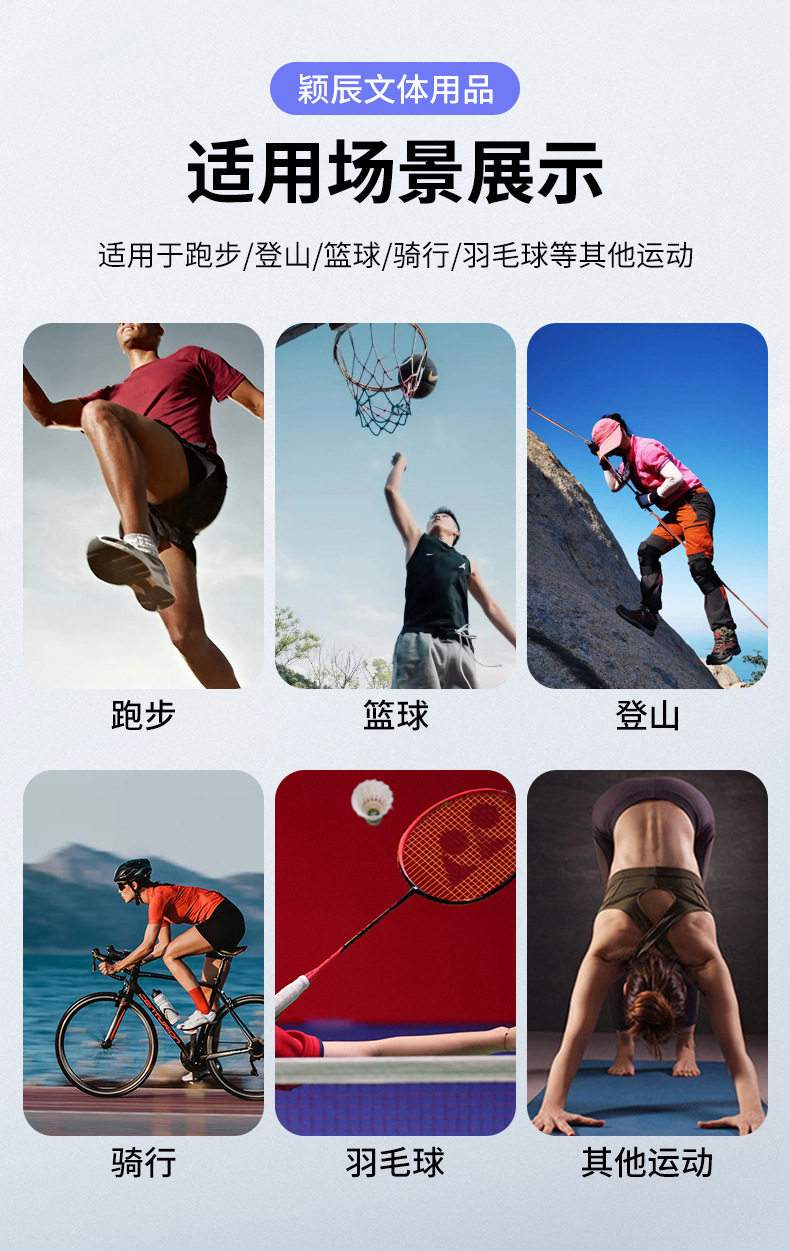 бег спорт; оборудование для фитнеса; оздоровительный массаж; тело для фитнеса; Спортивная тенденция; Велоспорт; Виды спорта на льду и снегу; экстремальные испытания; Пеший туризм и кемпинг; стрельба спорт; самооборона боевых искусств; Аксессуары для спортивного защитного снаряжения; танцевальный спорт; Баскетбольные упражнения; Спортивные и уличные сумки; Настольный теннис и теннис с перьями; Другие игры в мяч