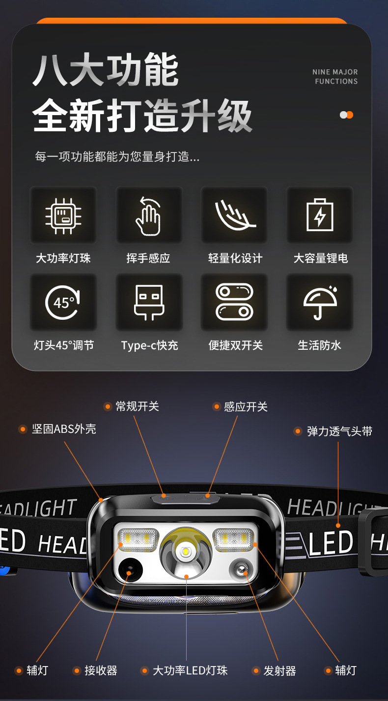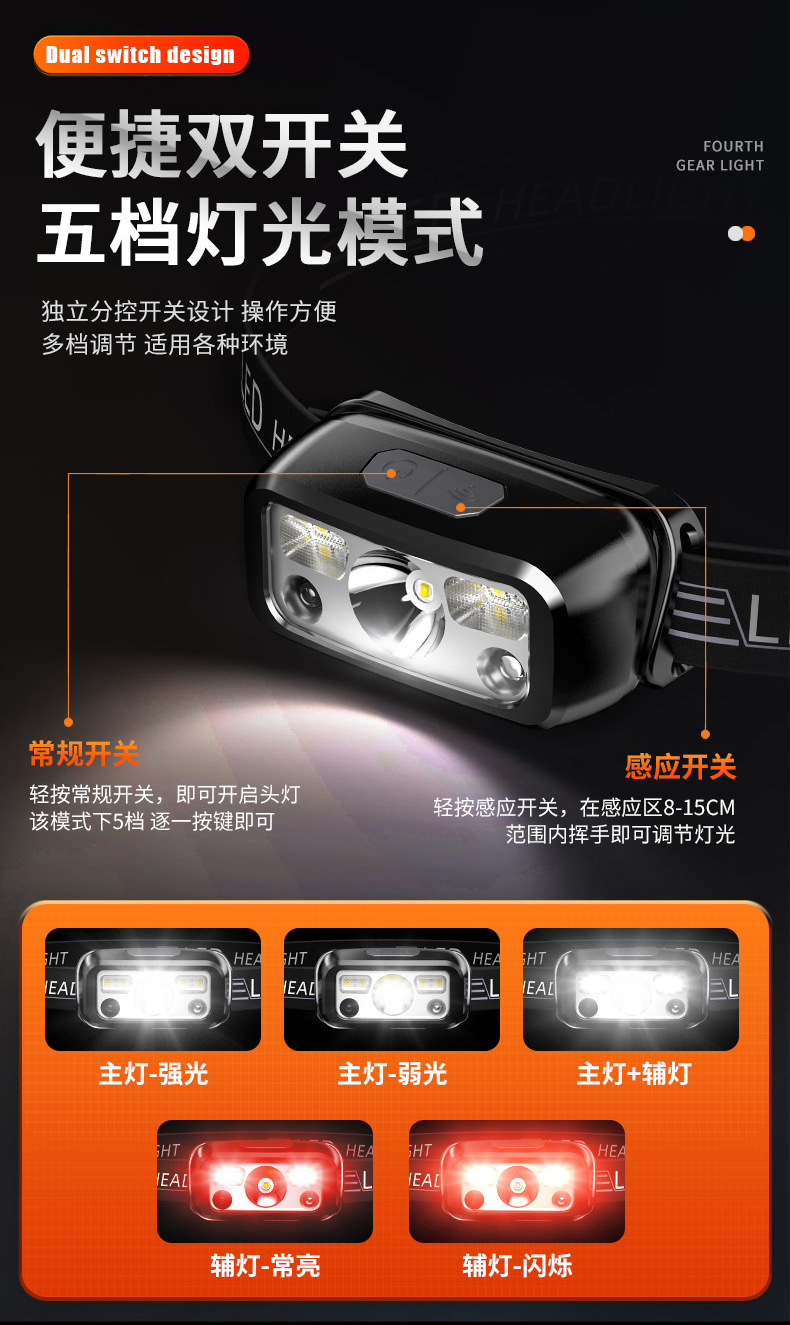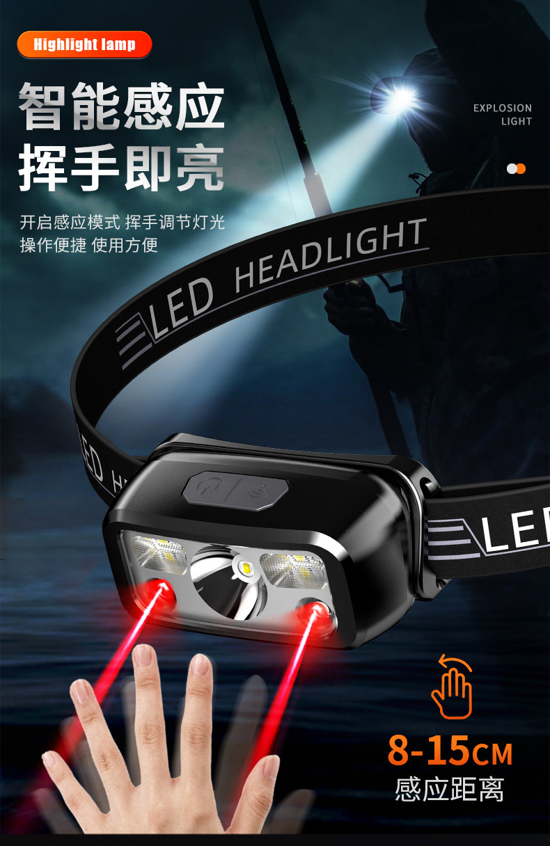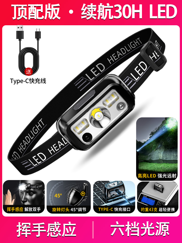 Сверхяркий перезаряжаемый яркий фонарик световой индукционный фонарик небольшой ночной рыбалки