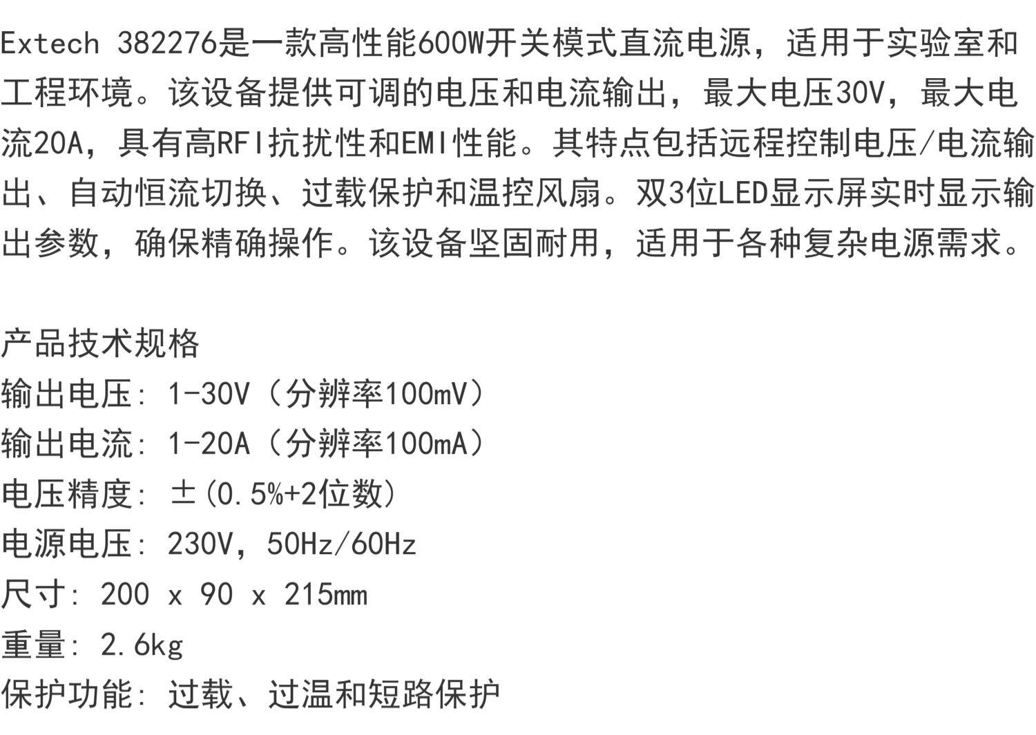 Extech 382276 600W Регулируемый постоянный ток питания Поддержка напряжения 230V