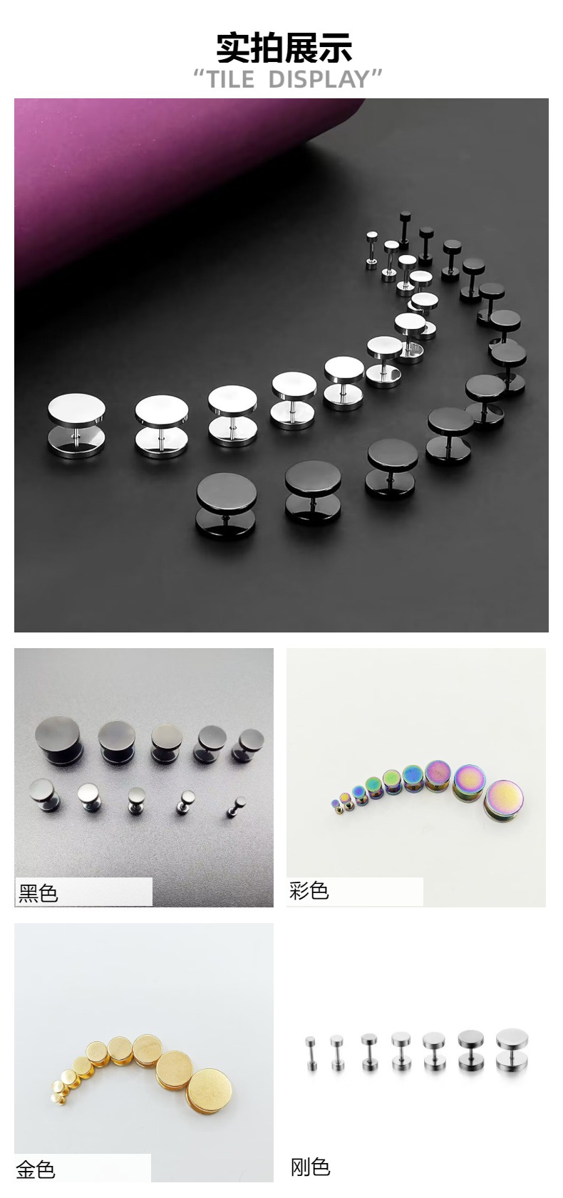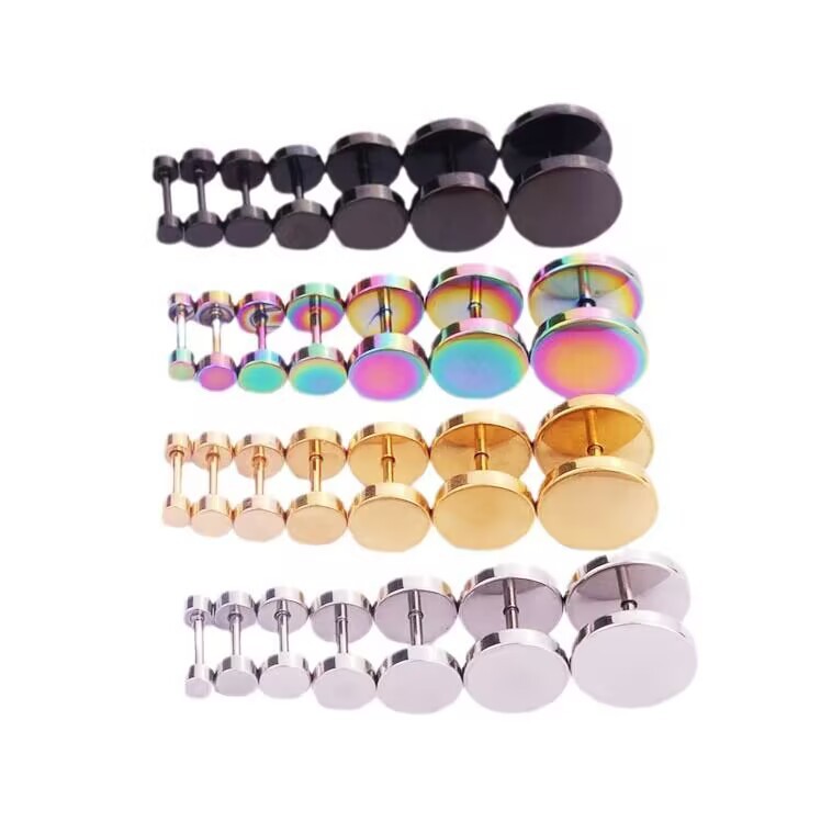 Трансграничные круглые серьги-штанги из нержавеющей стали, многоцветный комбинированный набор Amazon temu, хит продаж, круглая геометрия