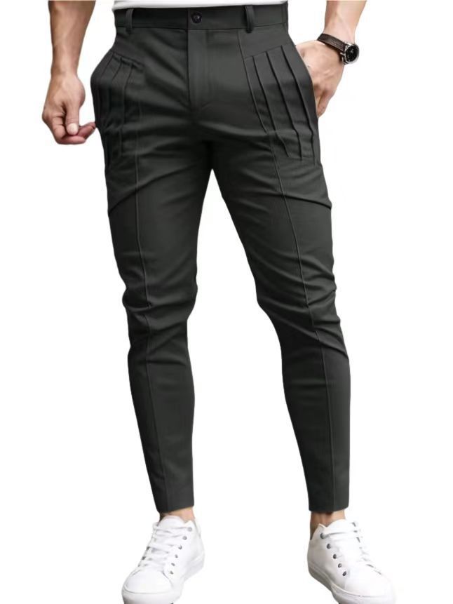 2024 Европейские и американские трансграничные горячие продажи Мужские сплошные узкие карманы на молнии повседневные узкие брюки