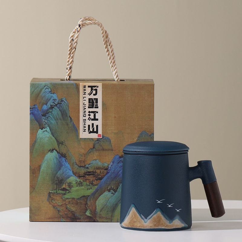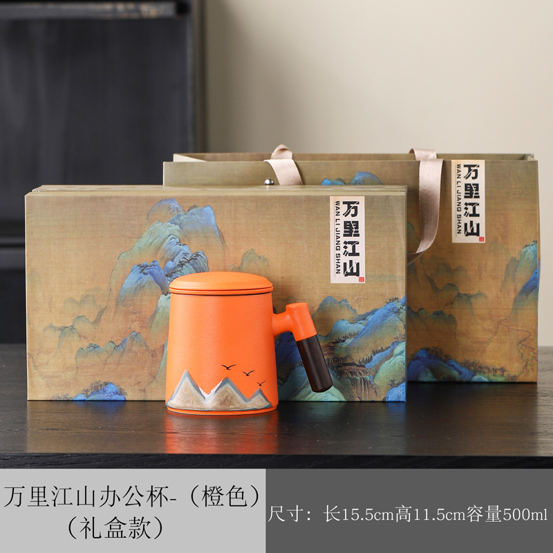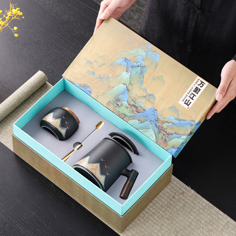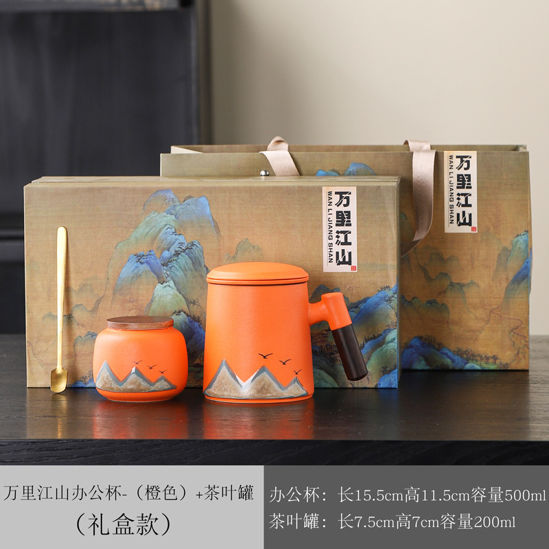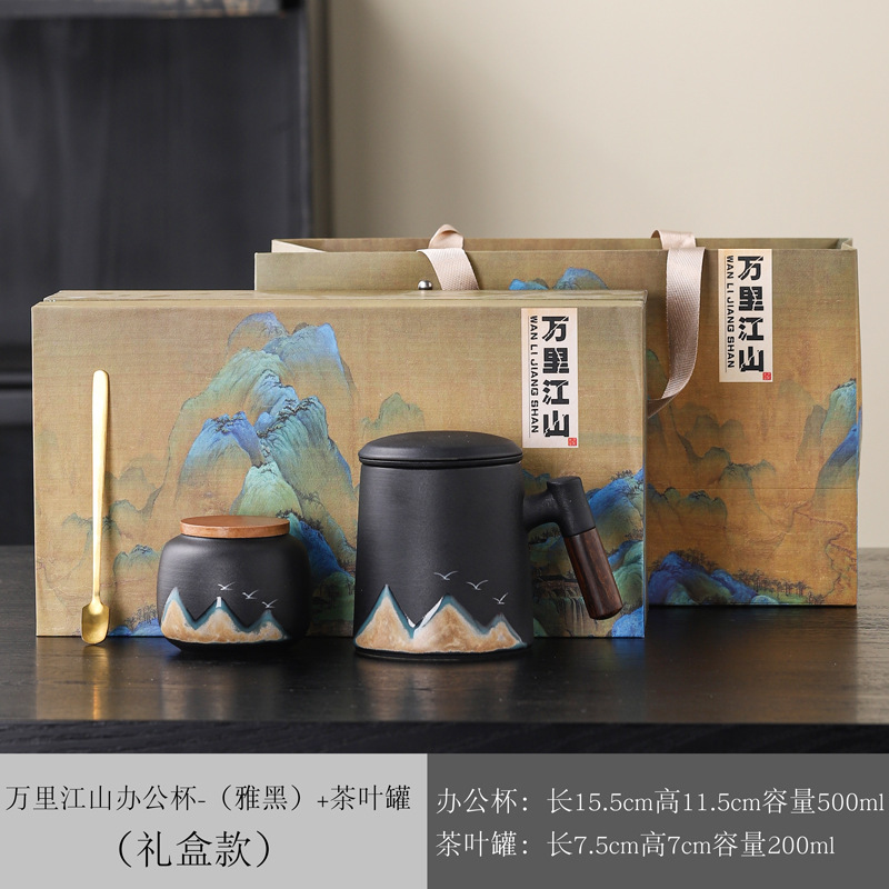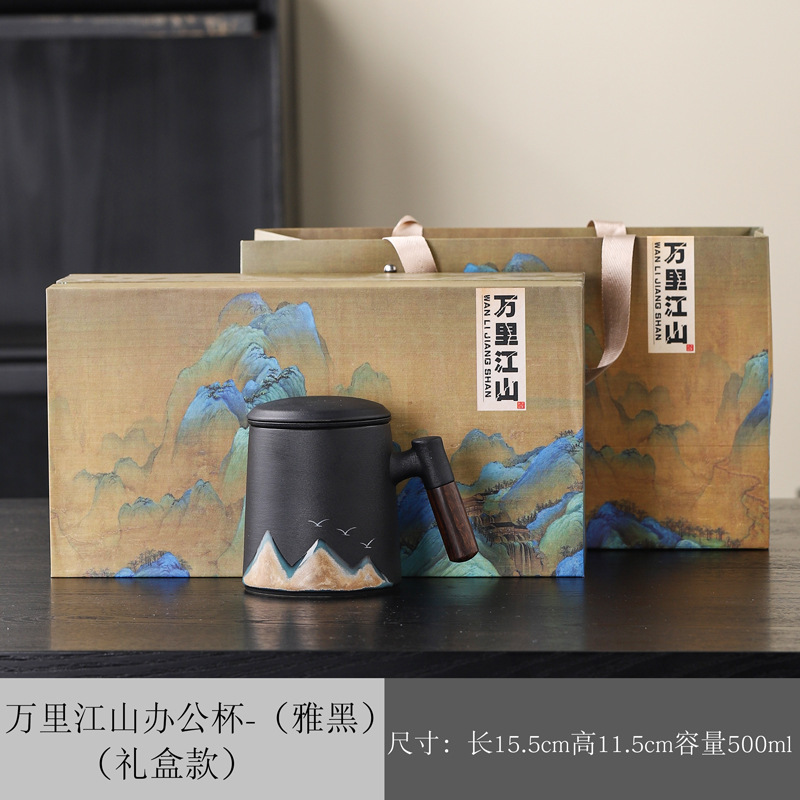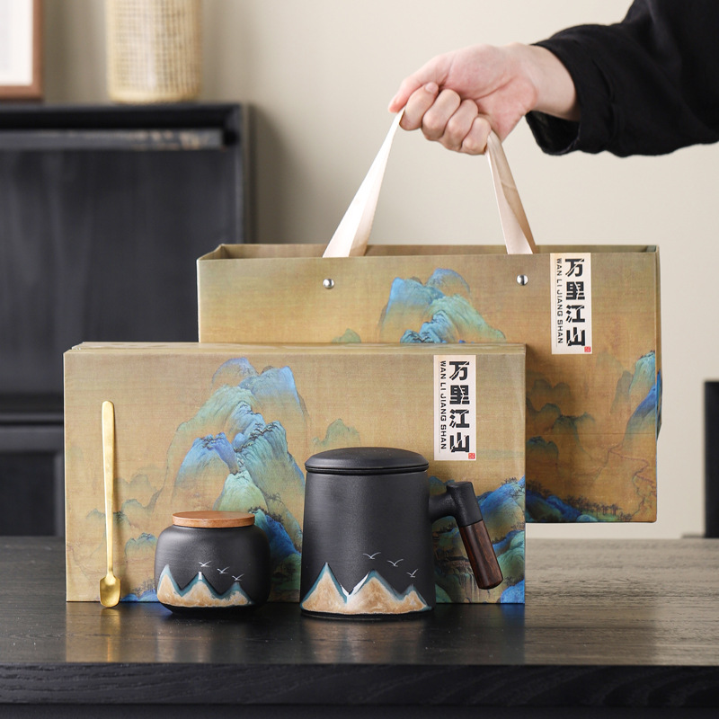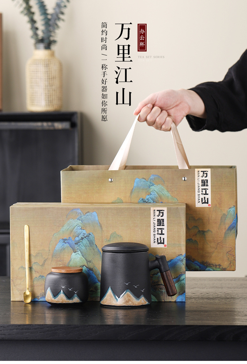 Новый чайный набор в китайском стиле из грубой керамики, офисная кружка, подарочная коробка, бизнес-сувенир, керамика Дехуа