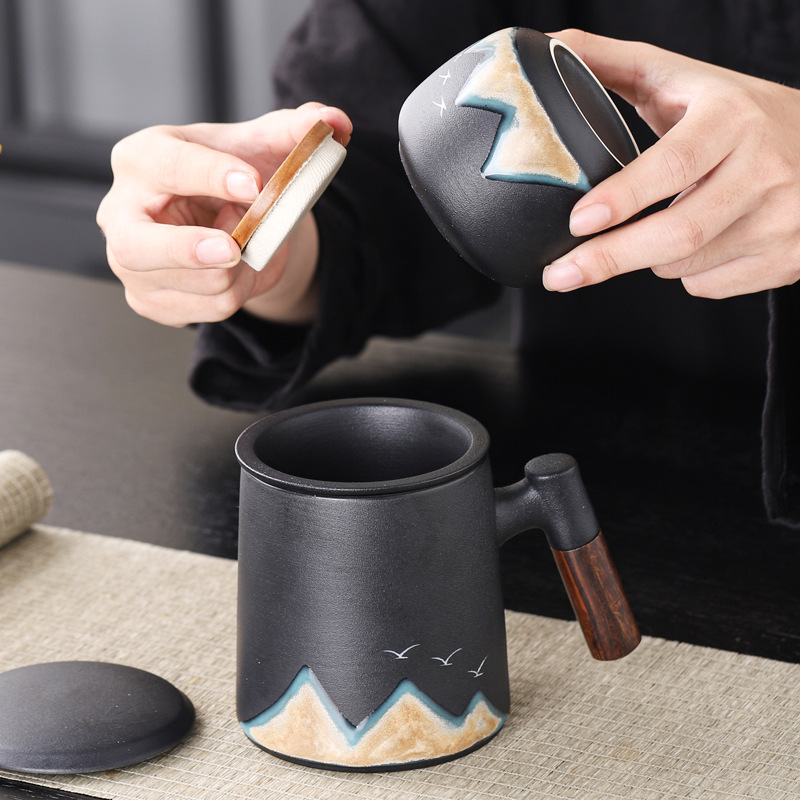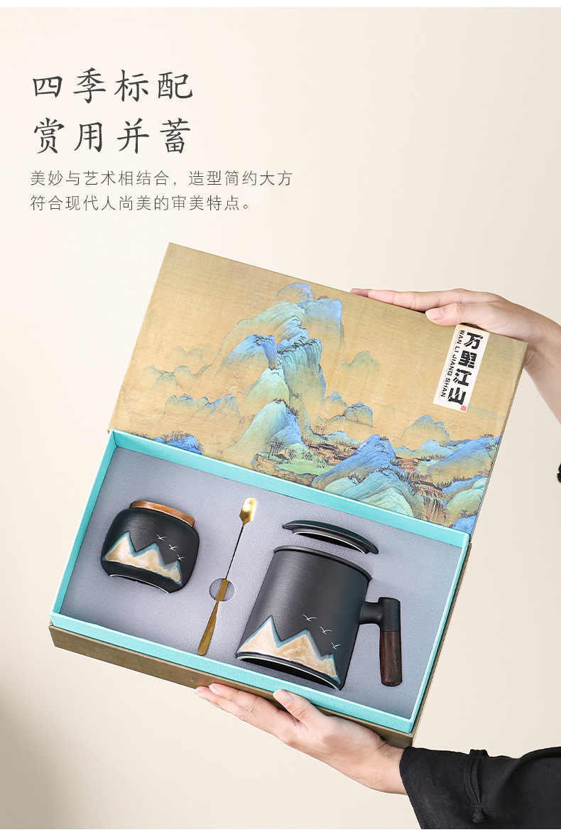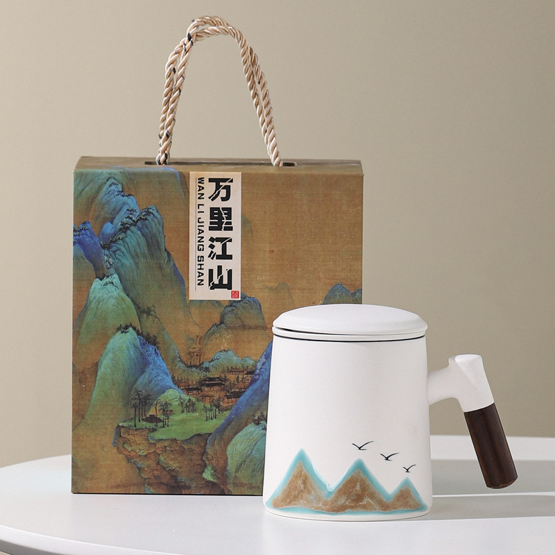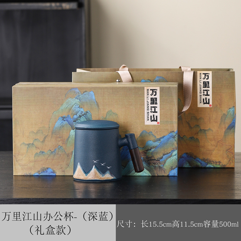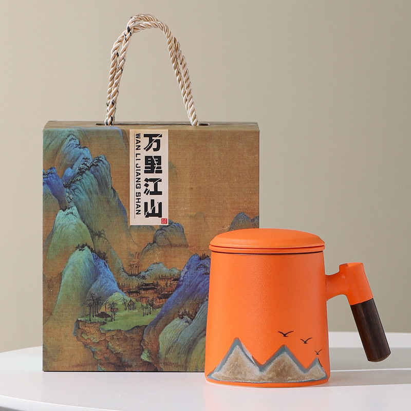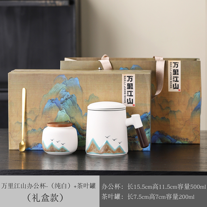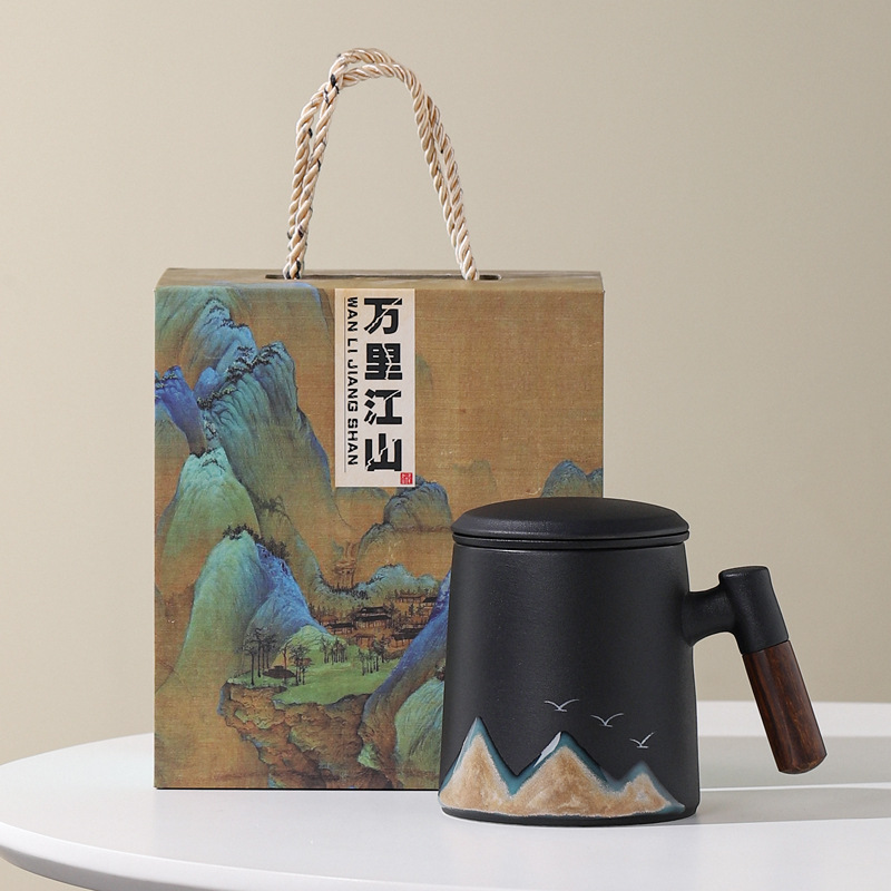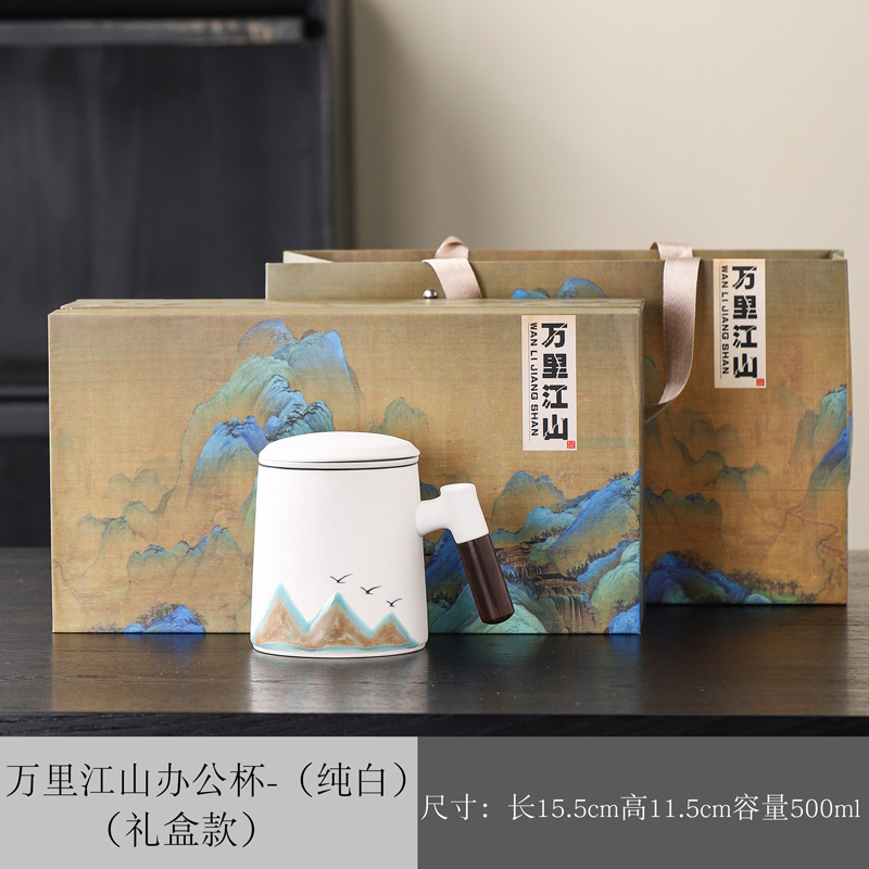 Новый чайный набор в китайском стиле из грубой керамики, офисная кружка, подарочная коробка, бизнес-сувенир, керамика Дехуа