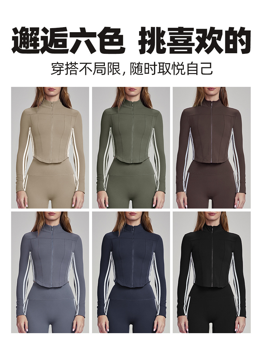 Большое дерево костюм костюм для йоги куртка для женщин высокого уровня чувство тонкое тело воротник на молнии топ йога фитнес спорт длинные рукава