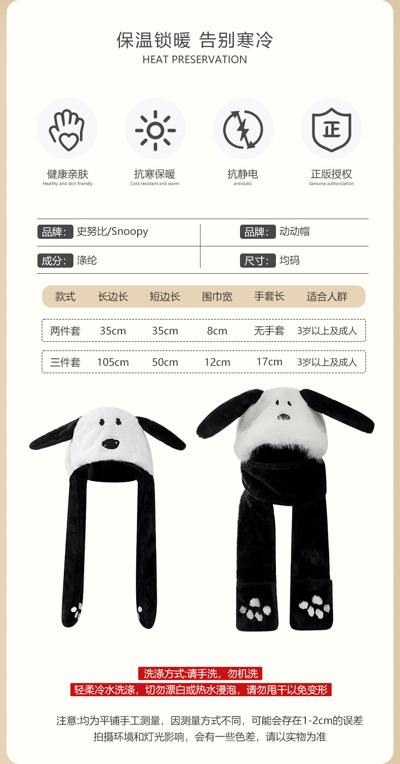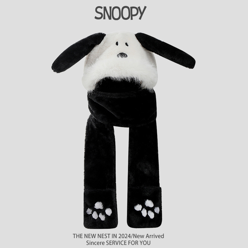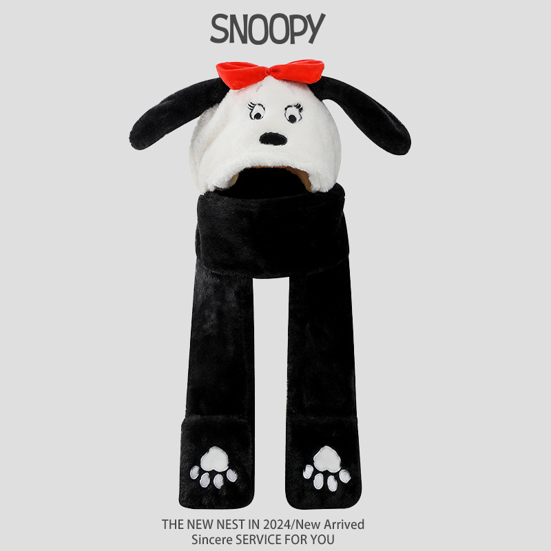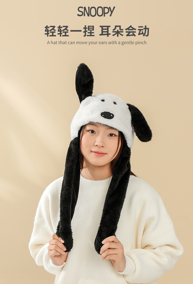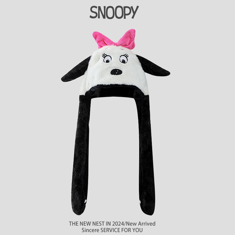 Snoopy Снупи уши будут двигаться милые плюшевые шапки шарф перчатки один женский зимний ухо, чтобы согреться