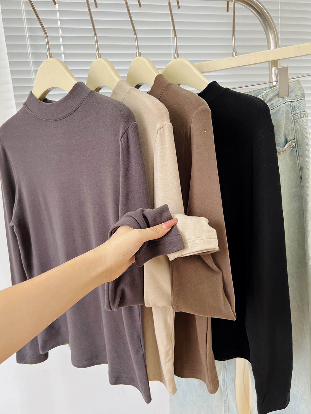 Тэнси шерстяной маленький стоячий воротник нижний рубашка женский осенний и зимний воротник теплый трикотаж мягкий восковой кожи с чистым топом