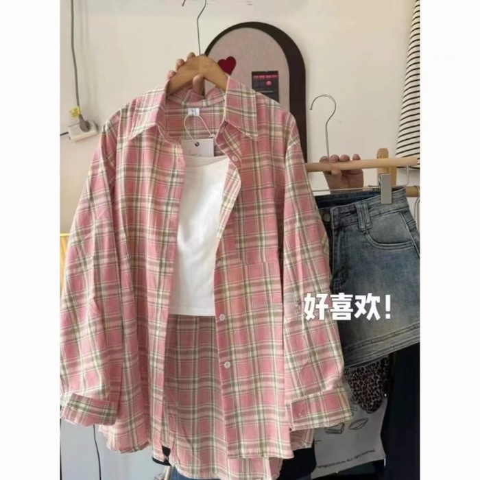 Корейская ретро-клетчатая рубашка с длинными рукавами, свободная рубашка, женская толстая мм, нишевый дизайн