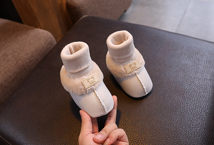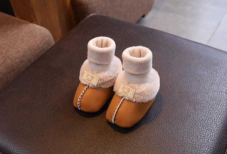 Осенние и зимние новорожденные меховые туфли и носки плюс бархатные кроссовки на мягкой подошве 0-1 год мужские и женские детские хлопковые туфли 3