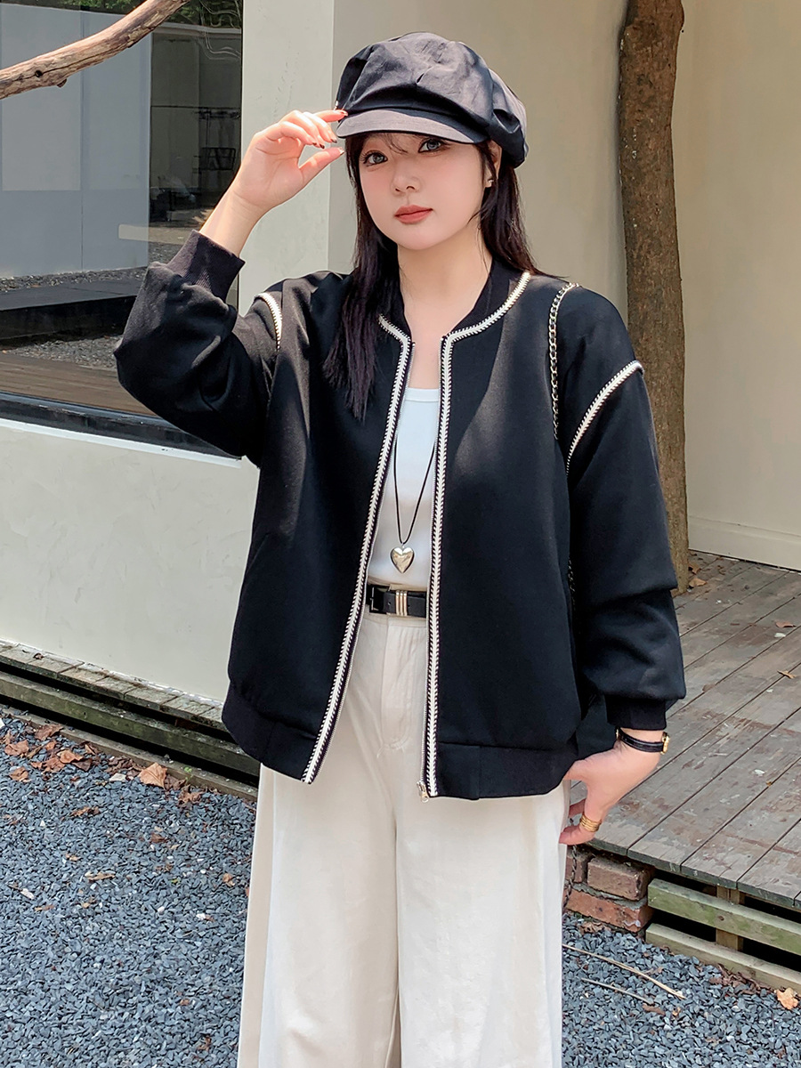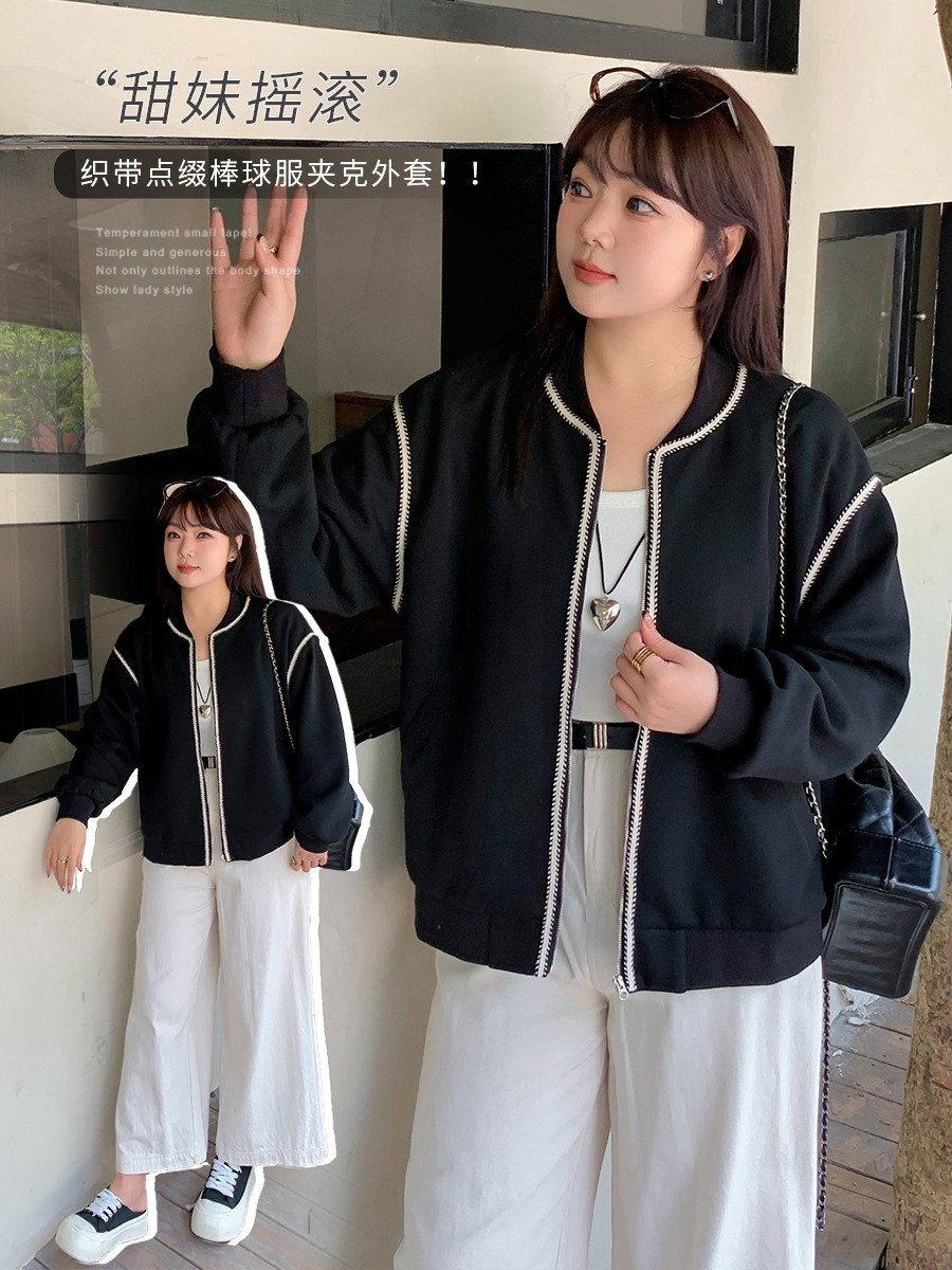 Черная бейсбольная куртка, новая осенняя модель, больших размеров, для полных девушек, спортивная куртка-униформа пилота 331635