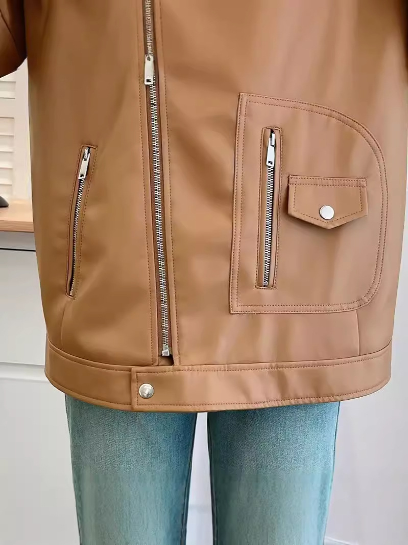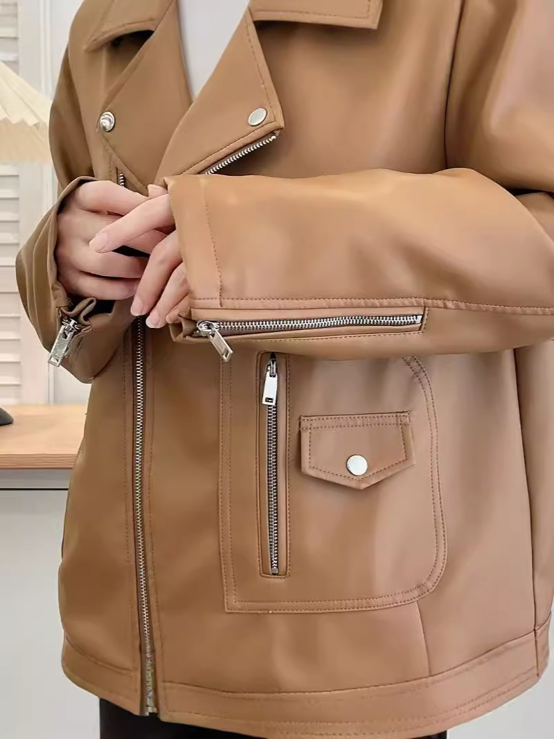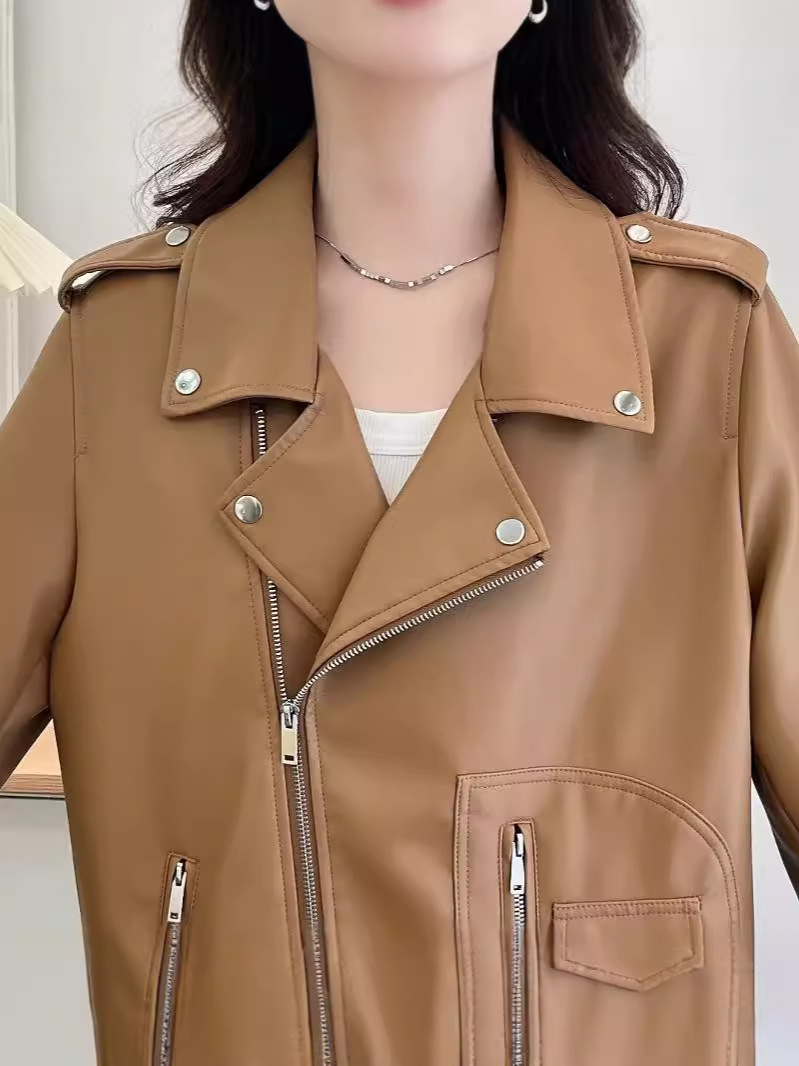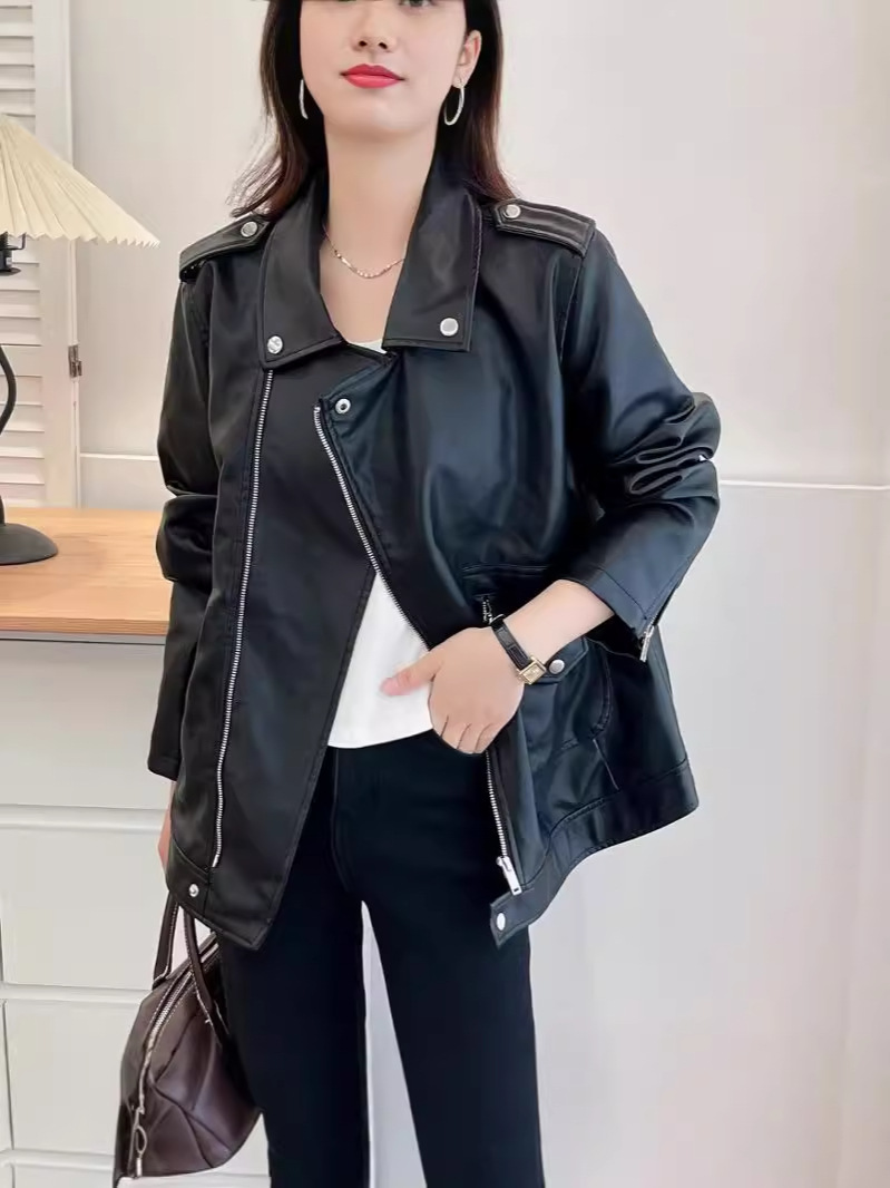 Кожаная куртка женский большой размер плеча 2024 осенью новый 200 кг толстый мм модный тонкий гонконгский ветер локомотив топ