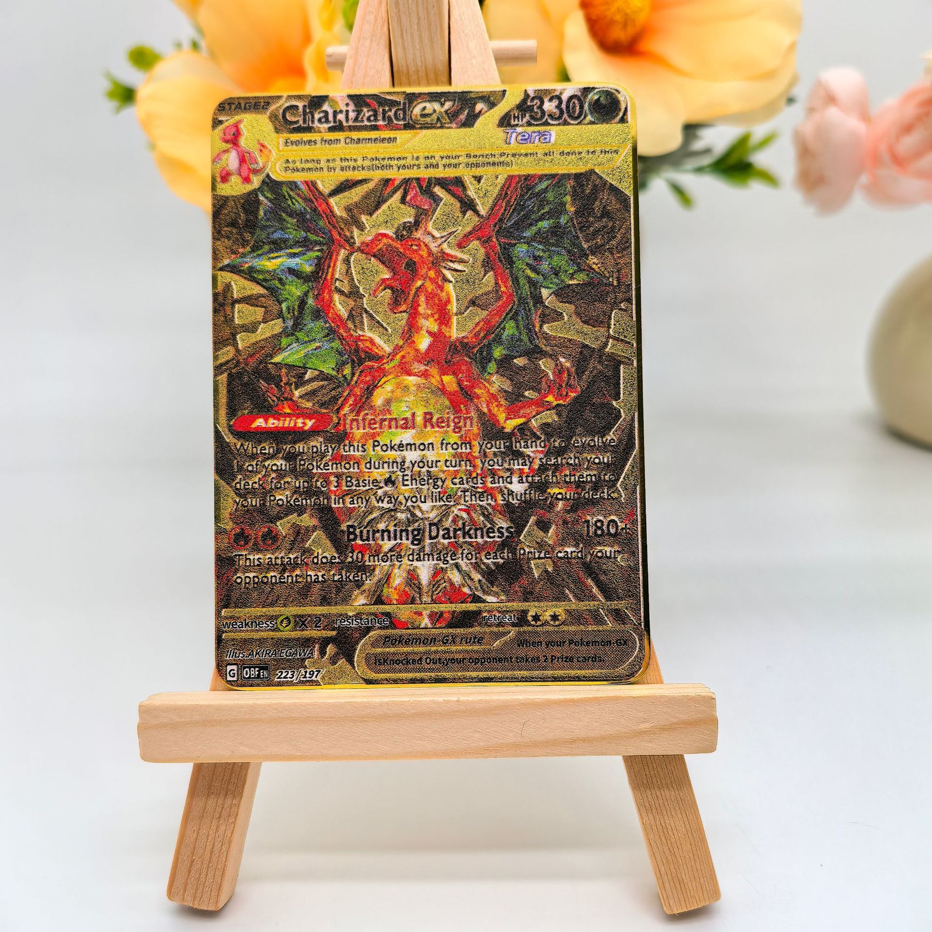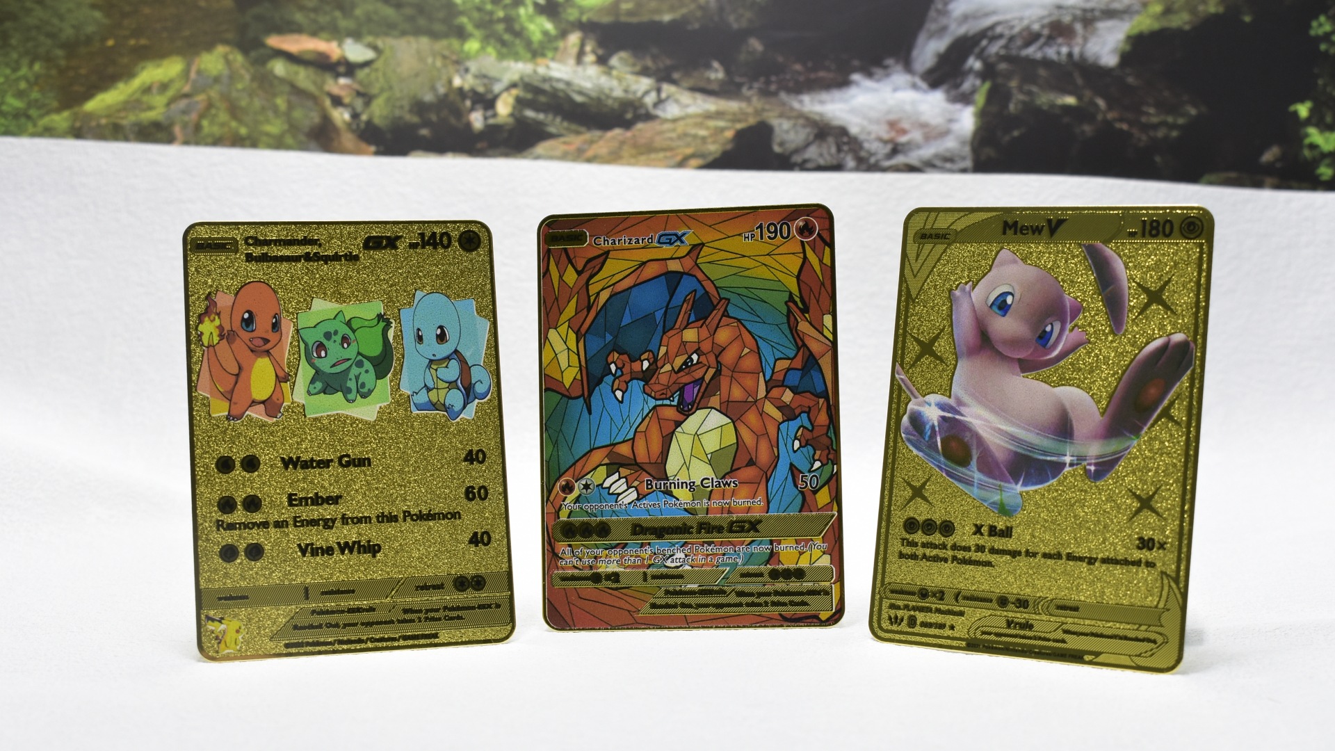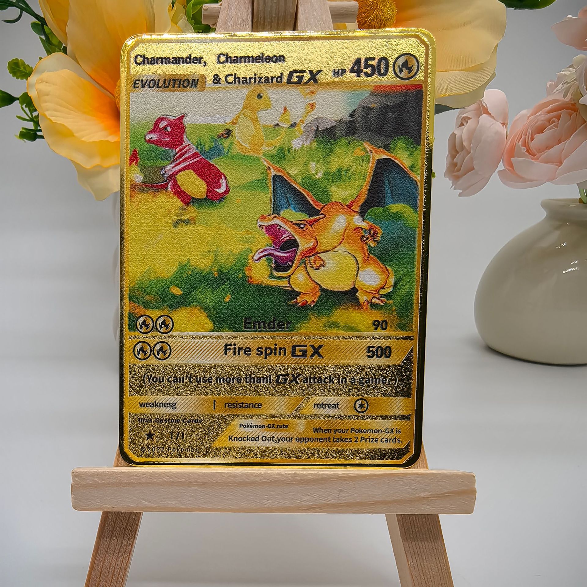 Трансграничная индивидуальная анимационная карточная коллекция, золотая нержавеющая сталь, УФ-цветная печать, настольная игра, детская игрушка, коллекция карточек, карта с золотой фольгой