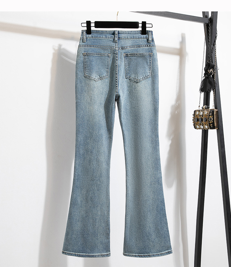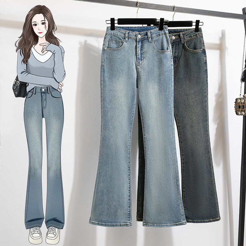 Реально тонкие джинсы микро-Ла женские осенние новые большие размеры толстые мм грушевидные брюки с высокой талией эластичные трусы