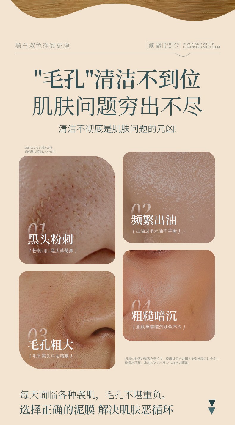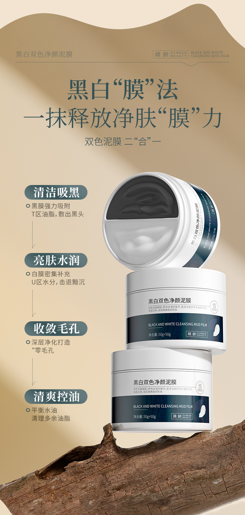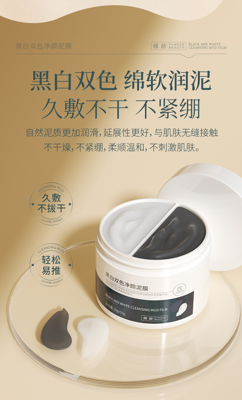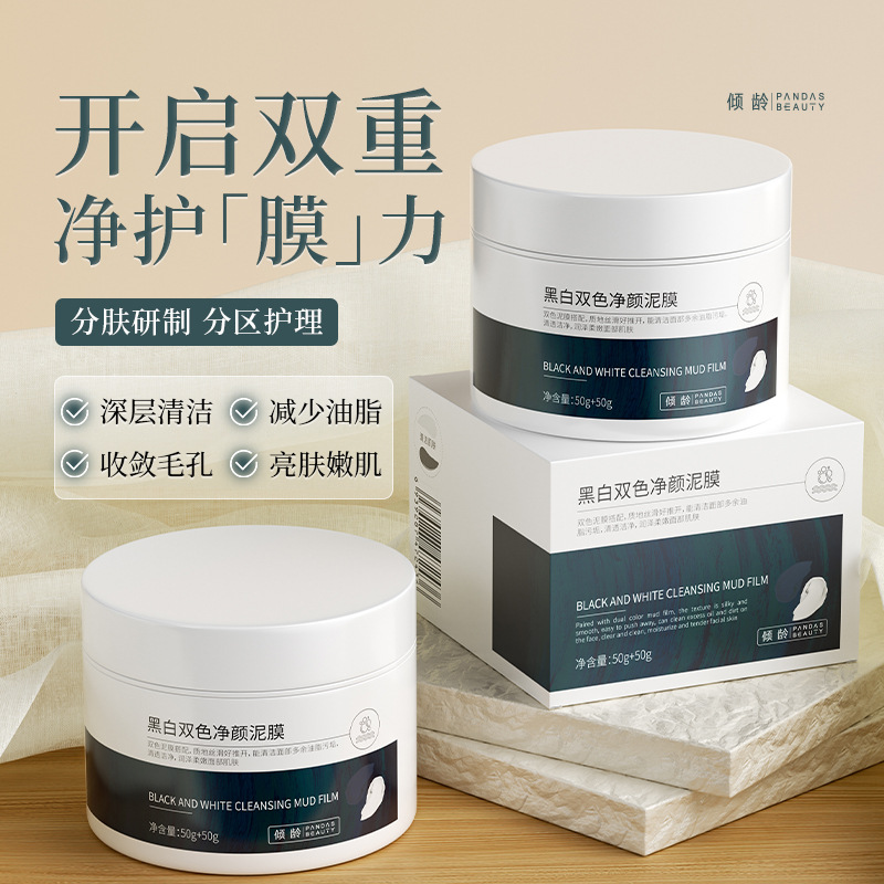 Черно-белая двухцветная очищающая грязевая маска Qingling