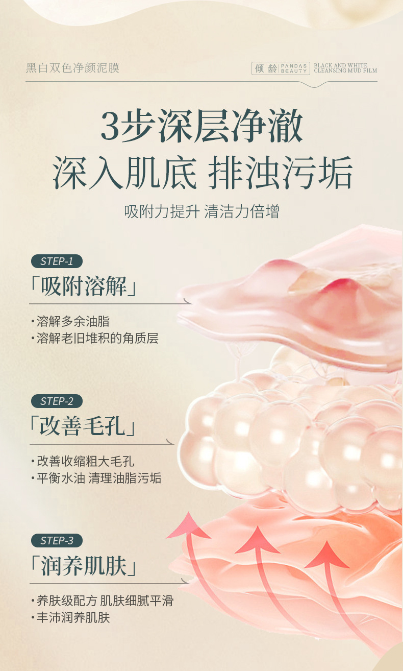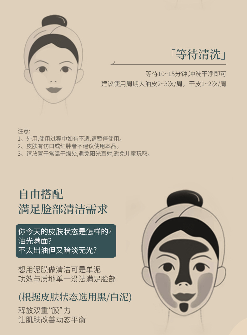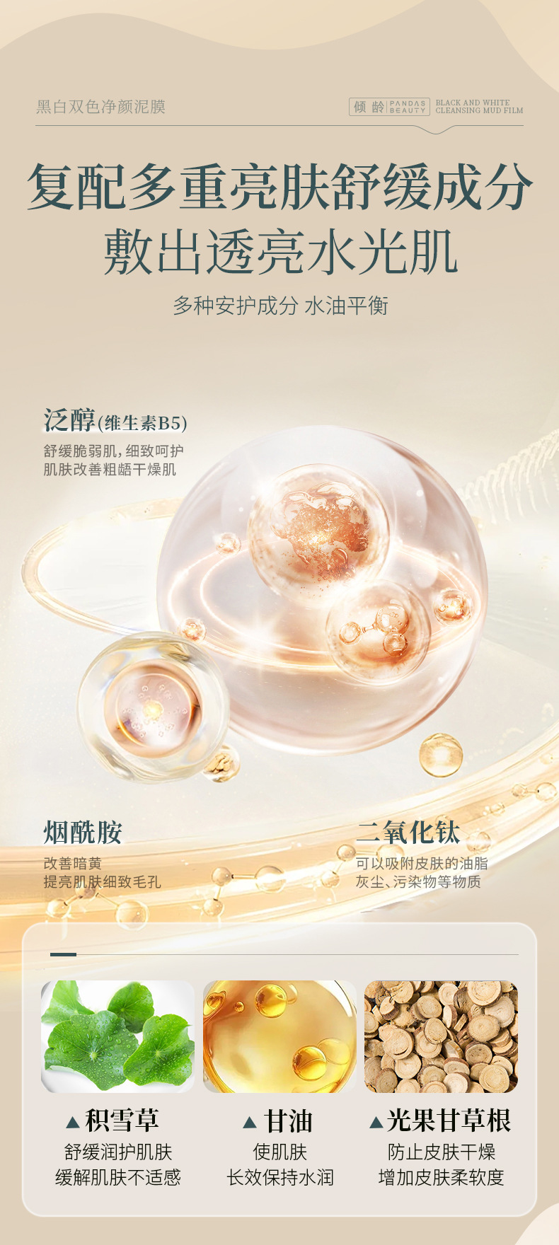 Черно-белая двухцветная очищающая грязевая маска Qingling