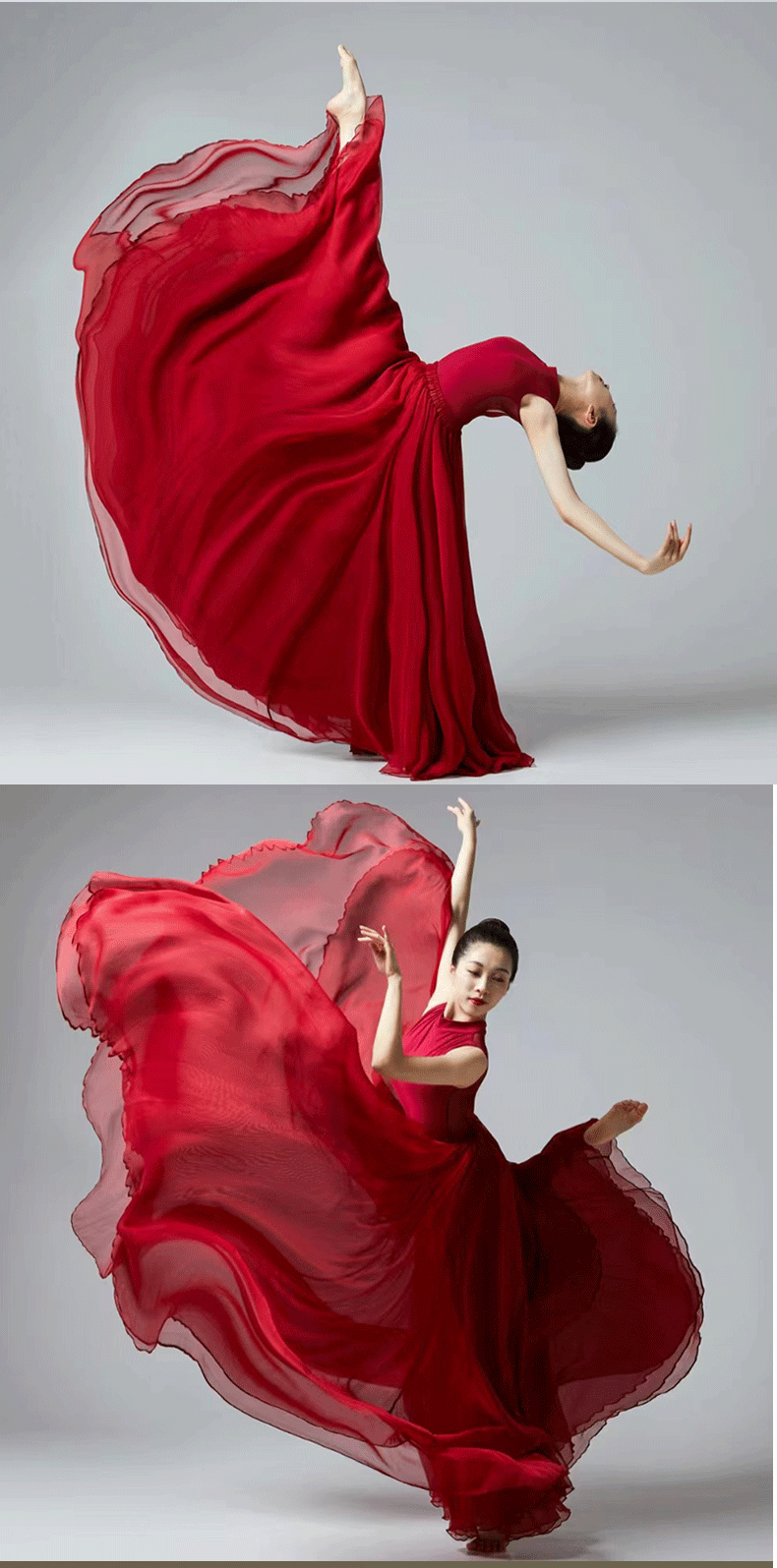 720 градусов классическая танцевальная одежда женская элегантная юбка-качели двухслойная шифоновая юбка красная белая Синьцзянская квадратная танцевальная одежда