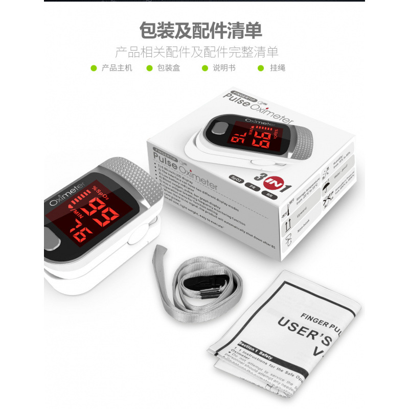 血氧仪饱和度 :反映机体内氧状况的重要指标,一般认为血氧饱度正常值应不低于94%,在94%以下被视为供氧不足。