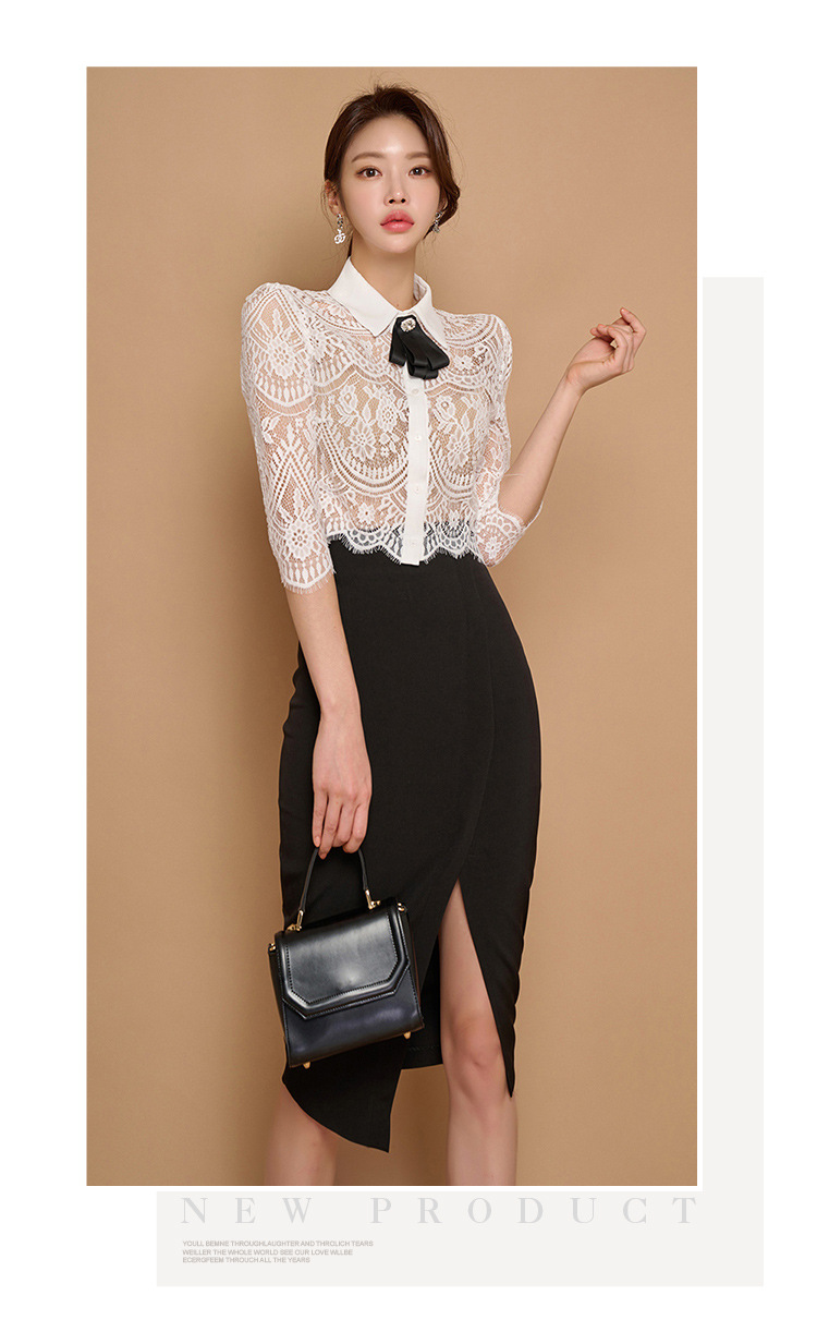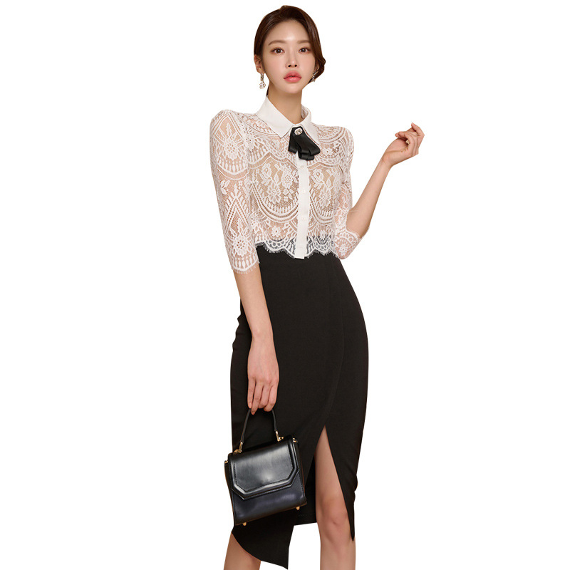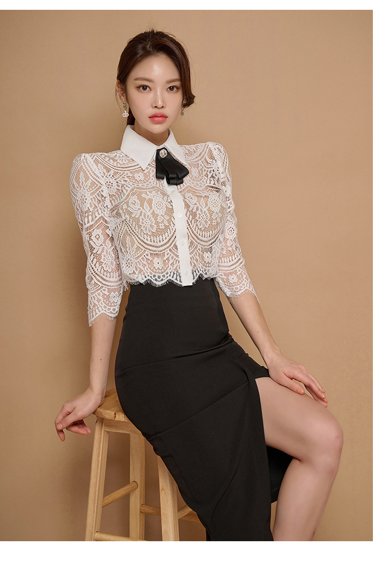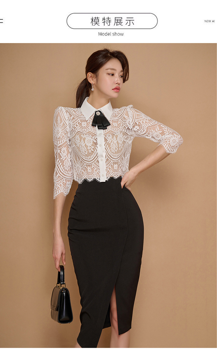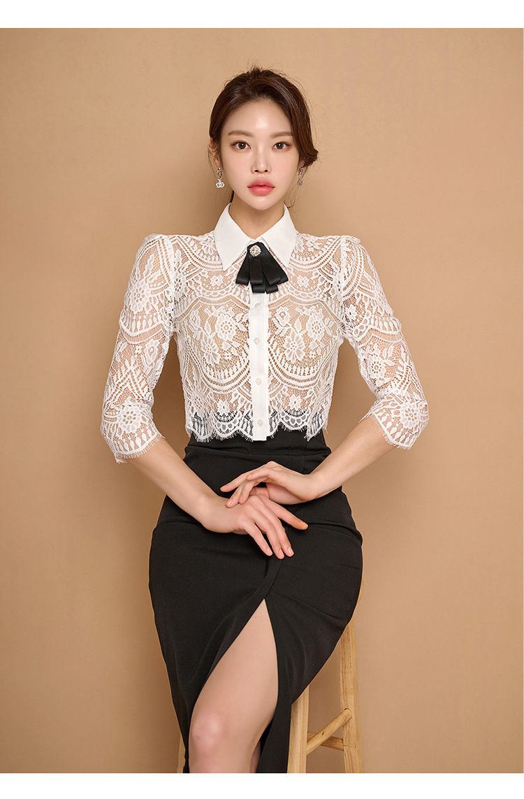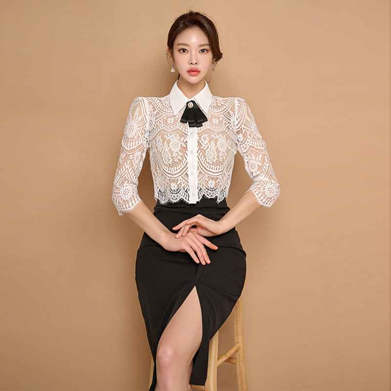 Внешняя торговля женская 2024 летняя новая корейская версия кружевной топ с лацканным воротником