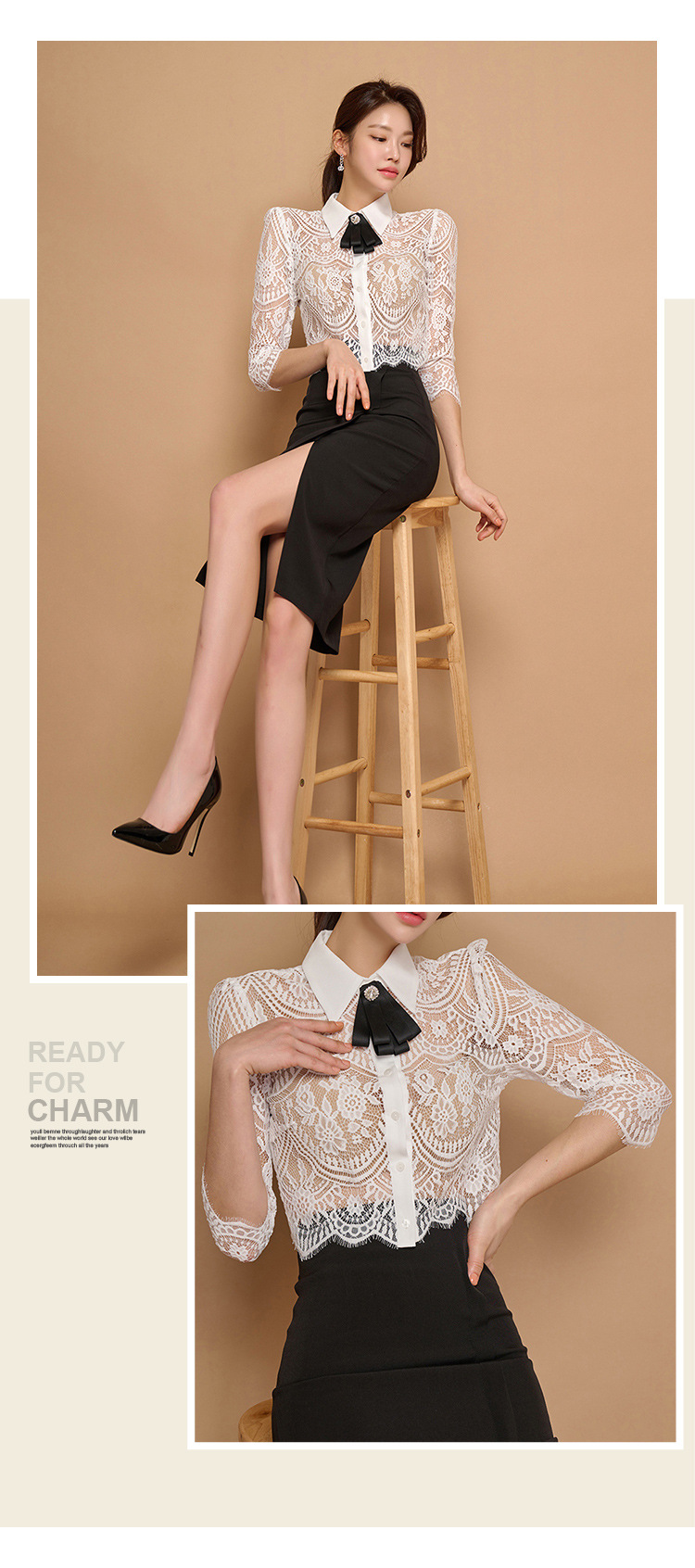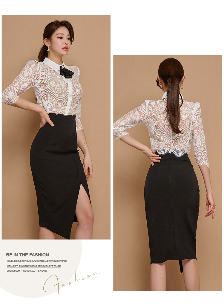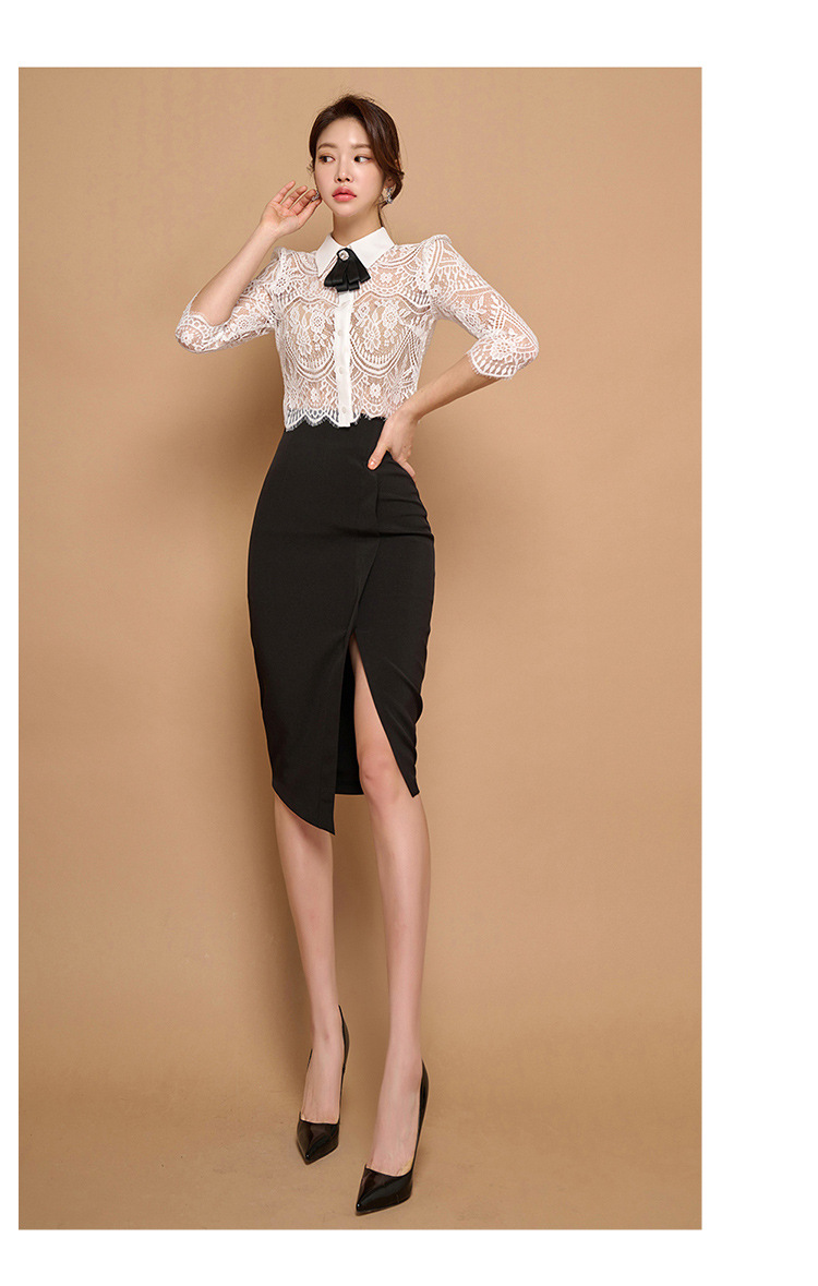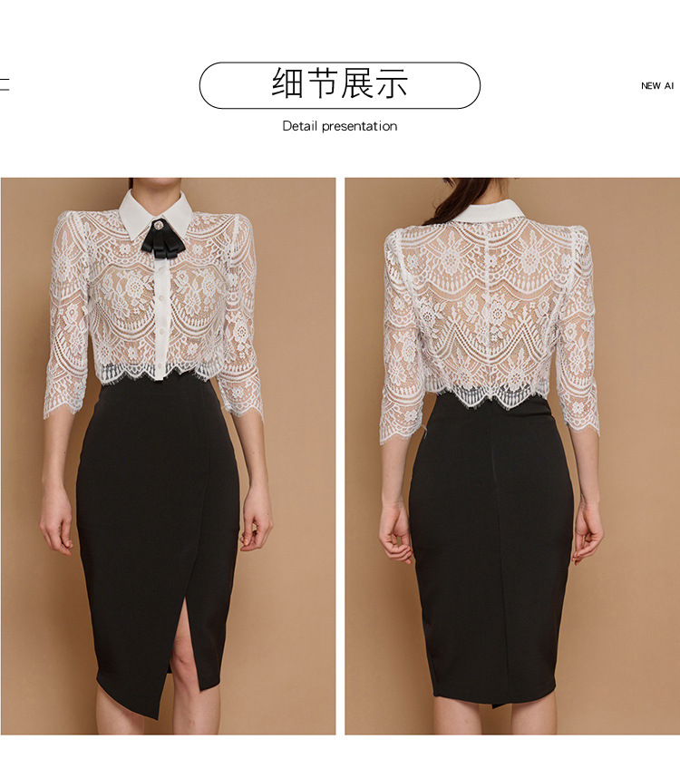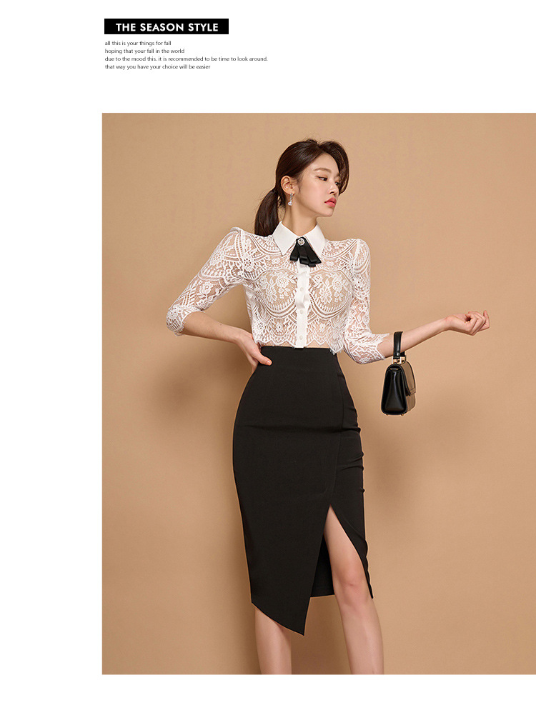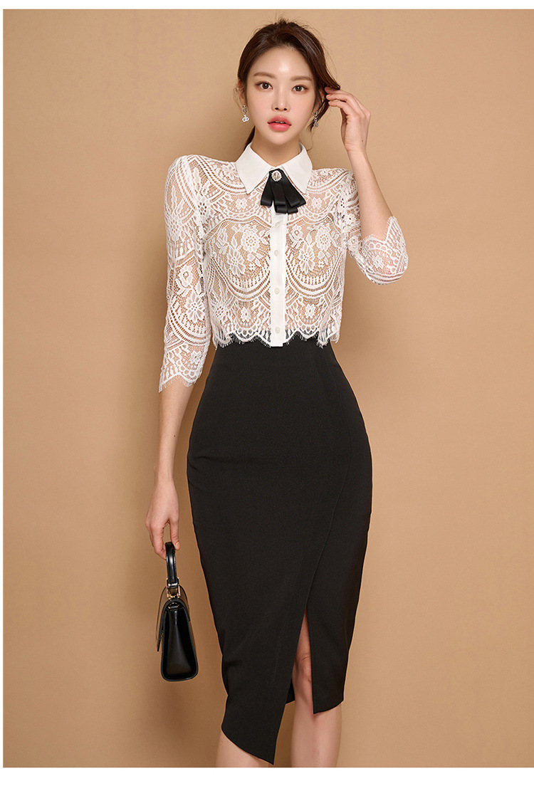 Внешняя торговля женская 2024 летняя новая корейская версия кружевной топ с лацканным воротником